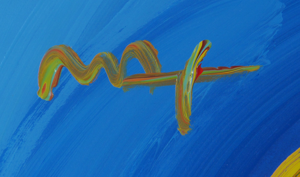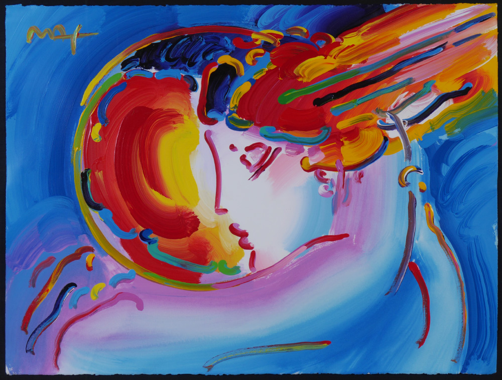 MAX, Peter, (American, 1937): ''I Love the World'', Acrylic/Paper, 22'' x 30'', signed upper left, framed, 36'' x 44'', original marker drawing with dedication, dated 2001. Provenance, Syd Entel Gallery, Safety Harbor, Florida.