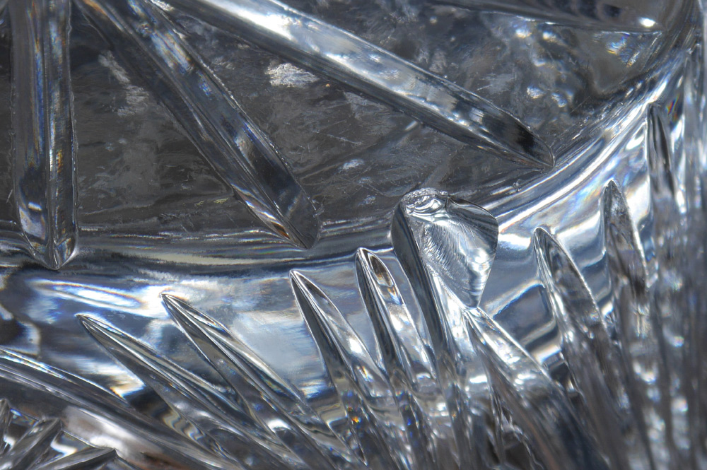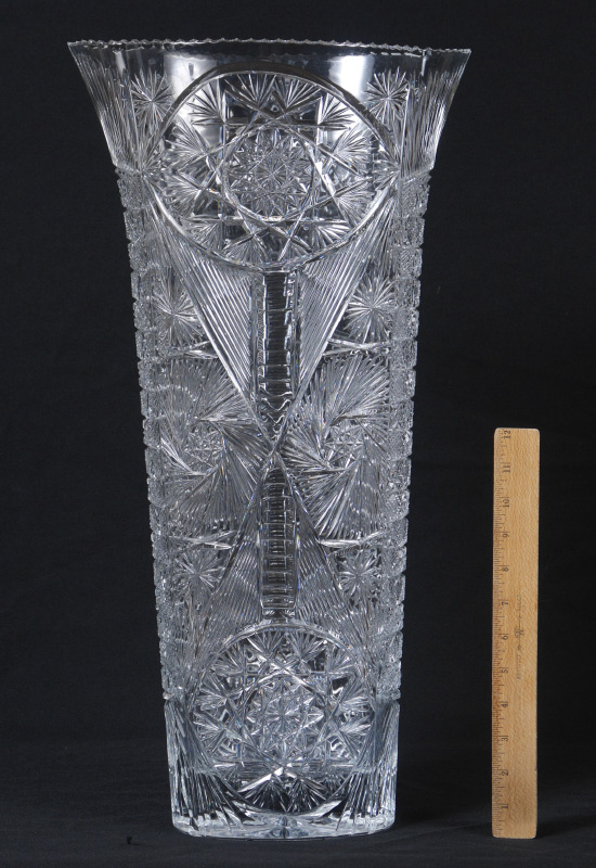 CONTEMPORARY CUT GLASS VASE: Measures 23 1/2'' tall x 12'' dia.
