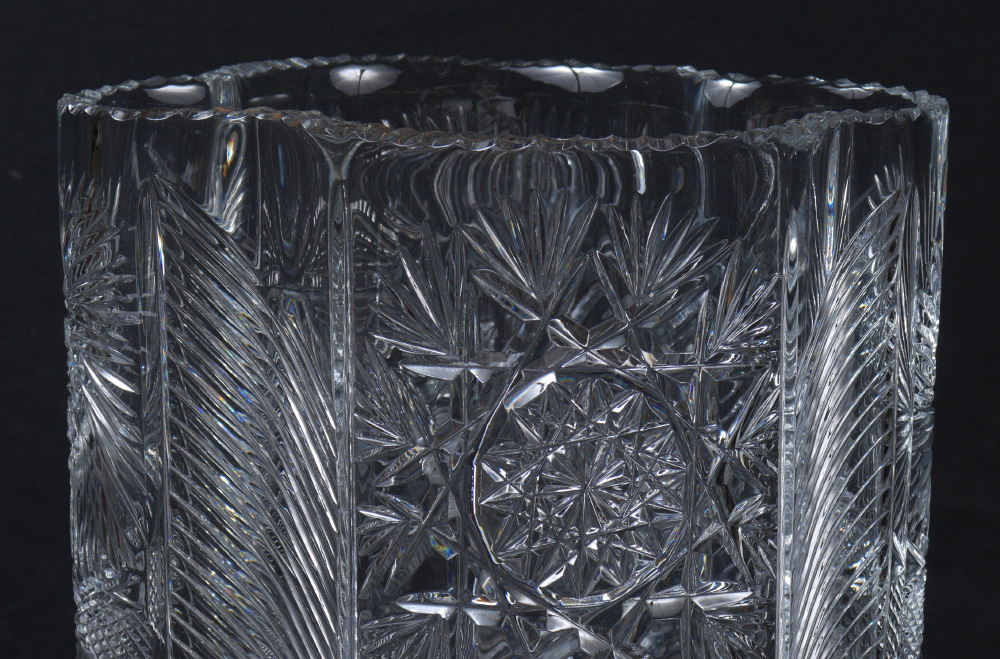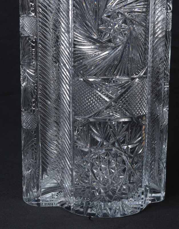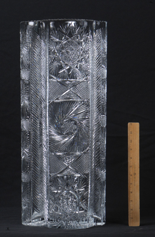 CONTEMPORARY CUT GLASS VASE: Measures 23 3/4'' tall x 9'' dia.