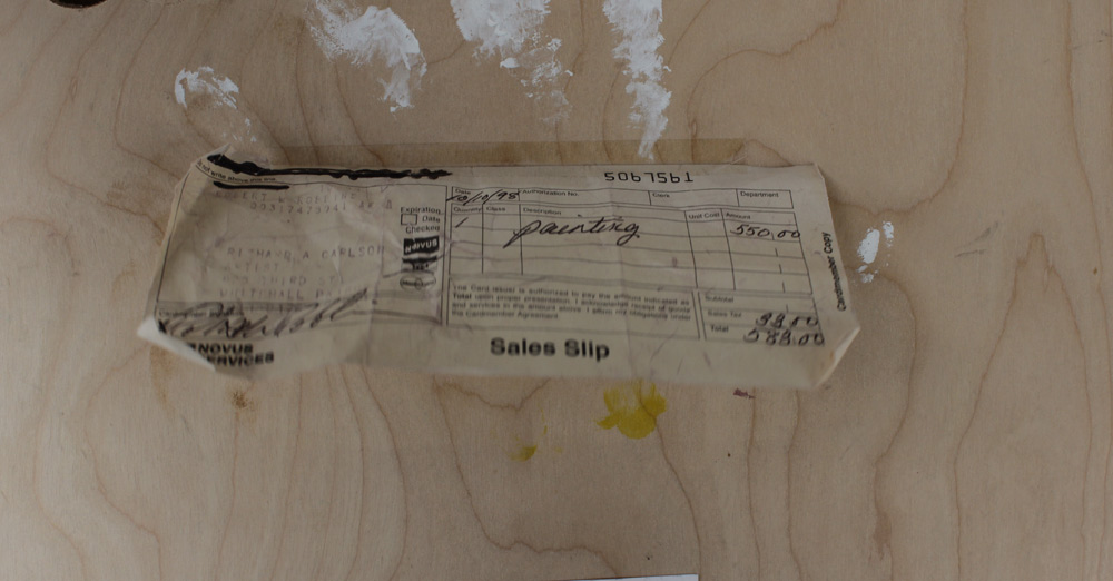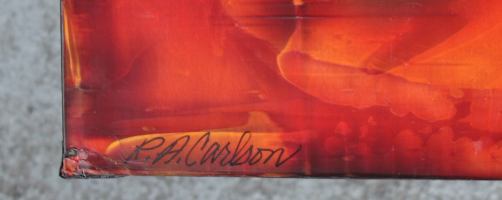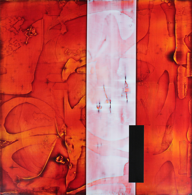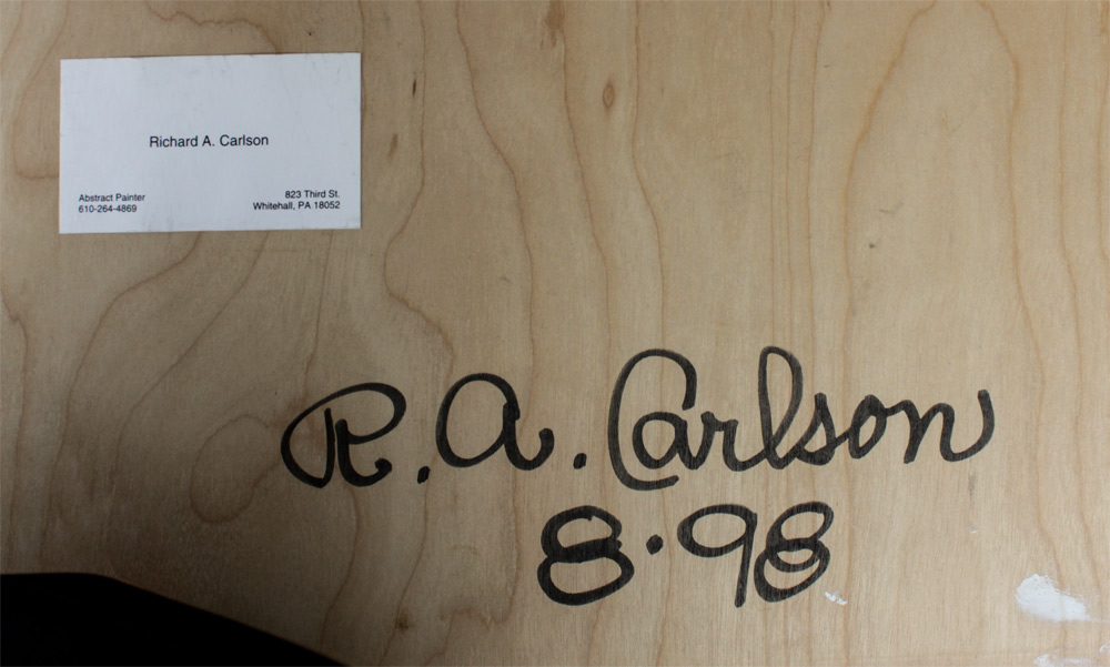 CARLSON, Richard, (American, 20/21st Centuries): Abstract Composition, Layered Transparent Acrylic, 23 3/4'' x 23 3/4'', signed lower left, signed verso and dated '98, original sales receipt and business card affixed verso, unframed.