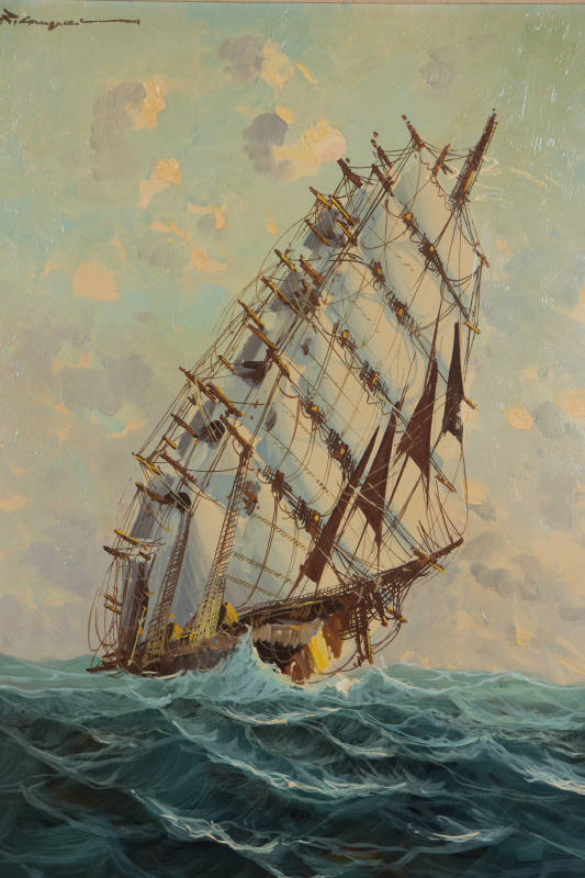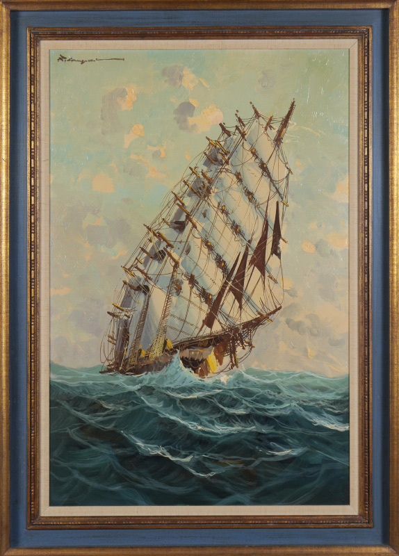 LONGANESI, Leo, (Italian 1905-1957): Clipper Ship at Full Sail, Oil/Canvas, 36'' x 24'', signed upper left, framed, 42 3/4'' x 31''.