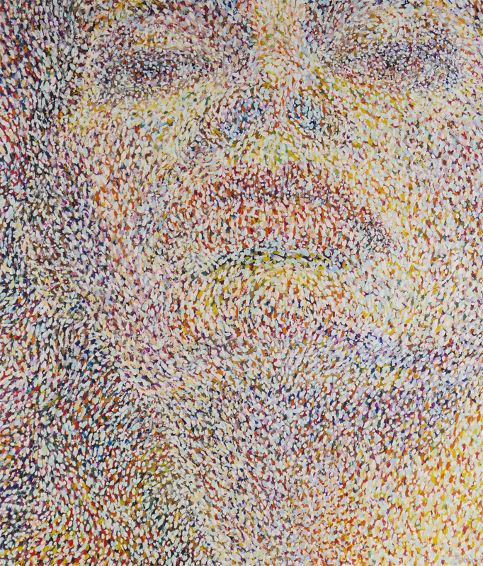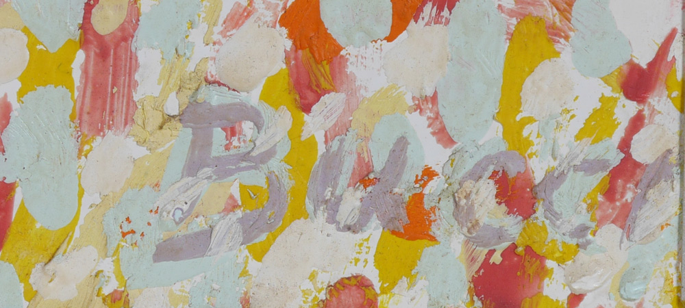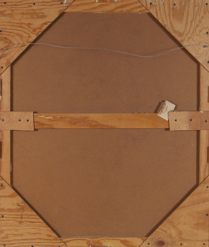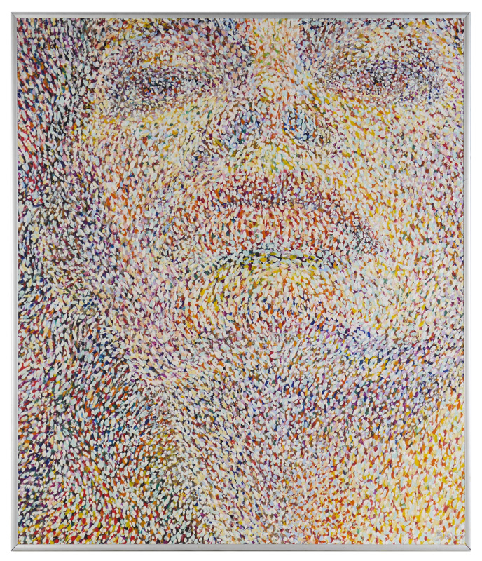 BUCCI, Andrew, (American, 1922- ): ''Serious UVB's'', Encaustic, 41 1/2'' x 36'', signed lower right, original label affixed verso and dated 1987, contemporary metal frame, 43 1/4'' x 37 1/4''.