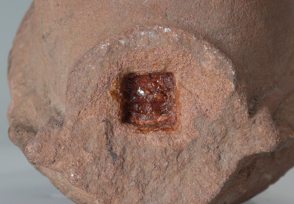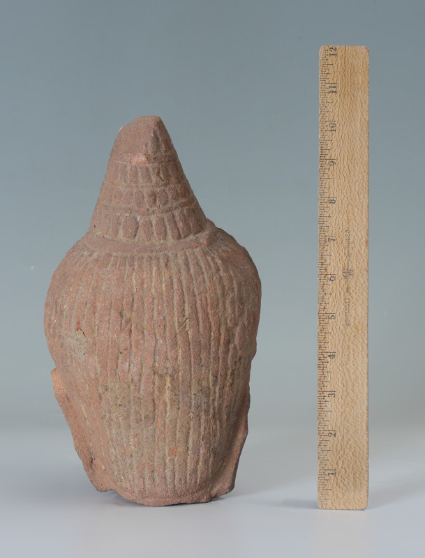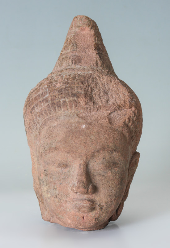 SANDSTONE ARCHITECTURAL FRAGMENT HEAD OF BUDDHA: Southeast Asian, measures 10 1/4''h. x 6''.