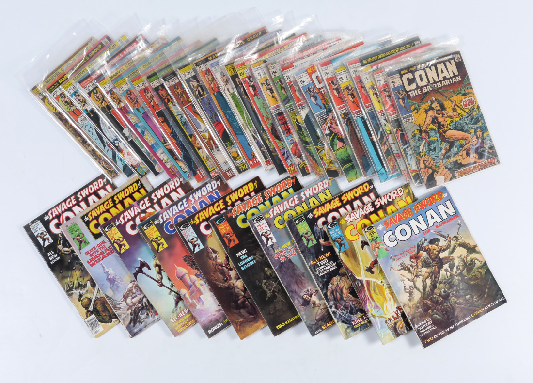 HUGE COLLECTION OF BRONZE AGE CONAN COMIC BOOKS: Includes #1-24 of Marvel ''Conan the Barbarian'', approx. 3/4 of a long box full total; #1 of Curtis ''The Savage Sword of Conan the Barbarian'', approx. 108 total; approx. 1/4 long box of ''King Conan''. Sold with assorted other Conan related titles.