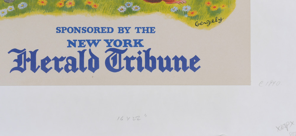GERGELY, Tibor, (American/Hungarian 1900-1978): Circa 1940 poster for the Childrens Book Festival sponsored by the New York Herald Tribune, Lithograph, 16'' x 22'', backed on linen, 28'' x 22''.