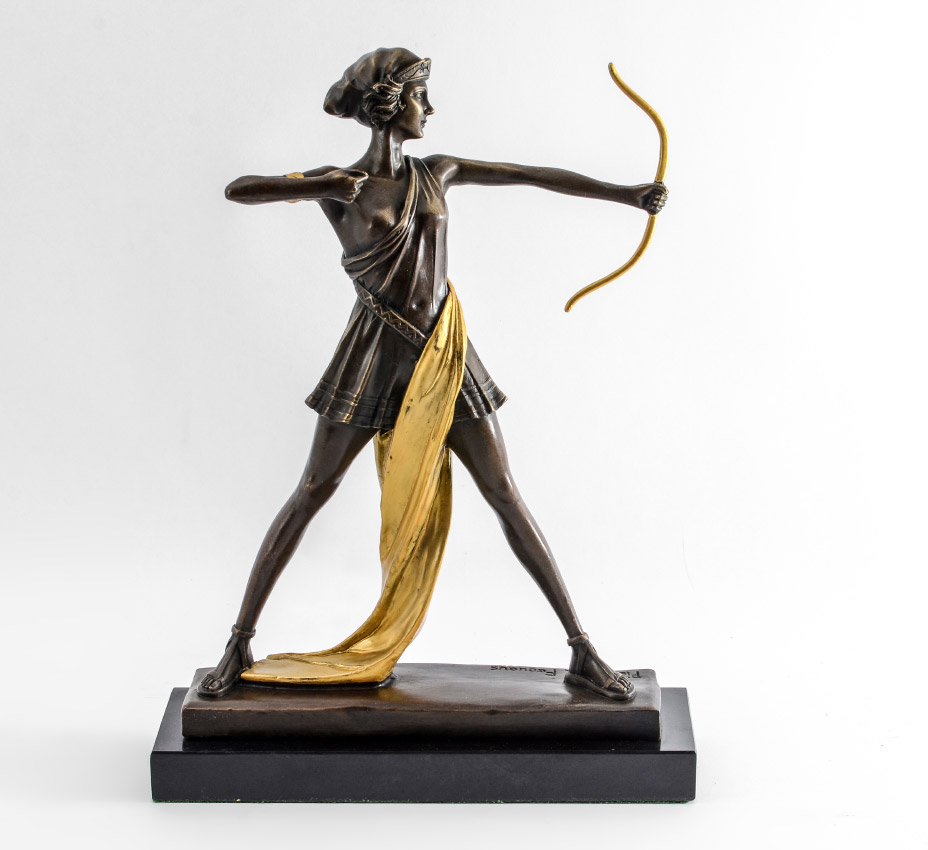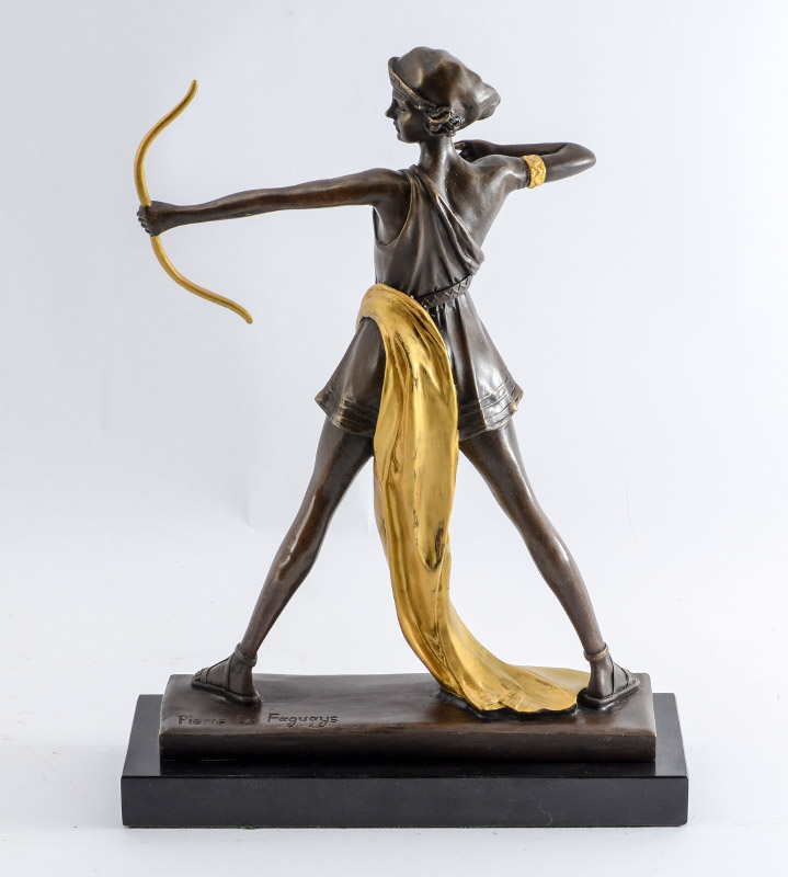 DECO BRONZE ARCHER AFTER FAGUAYS: Bronze, 12 1/4'' h. x 8 3/4'' w. x 2 1/2'' d., affixed to a marble plinth overall measures 13 3/4'' h.