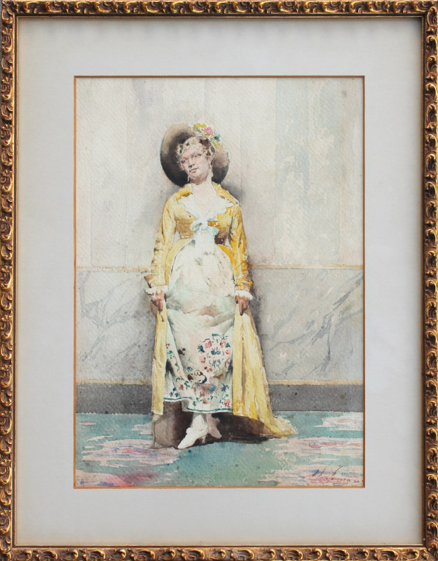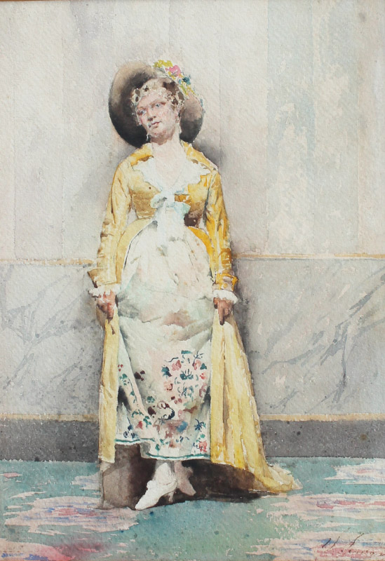 SCIPIONE, Simoni (Italian, 1853-1918): Painting of a Young Girl in a Yellow Dress, Watercolor, sight size 13 1/4'' x 9 1/2'', signed lower right, framed, 18 1/4'' x 13 1/4''.