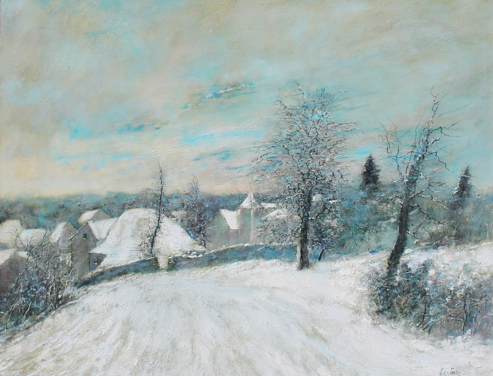 GANTNER, Bernard, (French, 1928-): ''Matin d'Hiver'', Winter Village Landscape, Oil/Canvas, 30'' x 36'', signed lower right, Wally Findlay receipt and appraisal, purchased in 1981 for $8000.