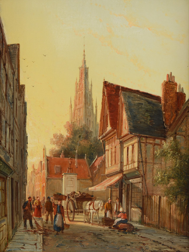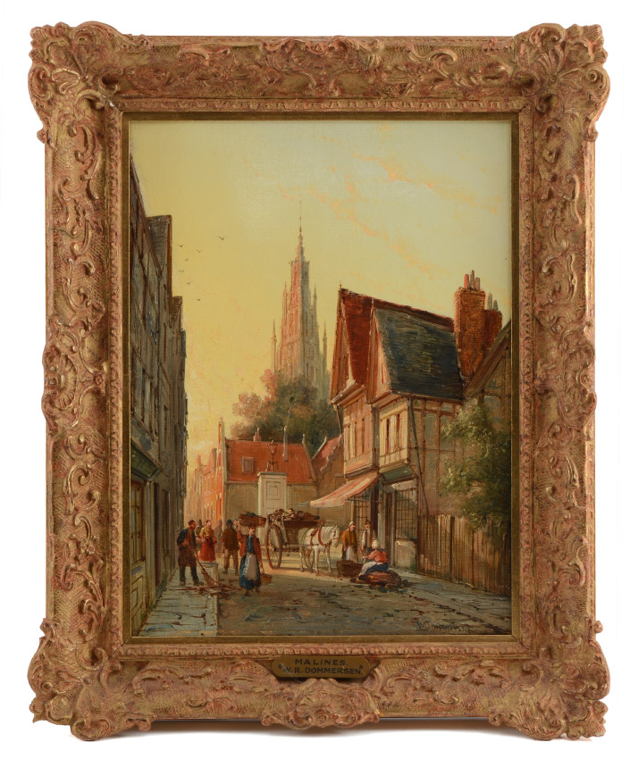 DOMMERSEN, William Raymond (Dutch, 1850-1927): ''Malines'', Street Scene, Oil/Canvas, 16'' x 12'', signed lower right, framed, 20 1/2'' x 16 1/4''.