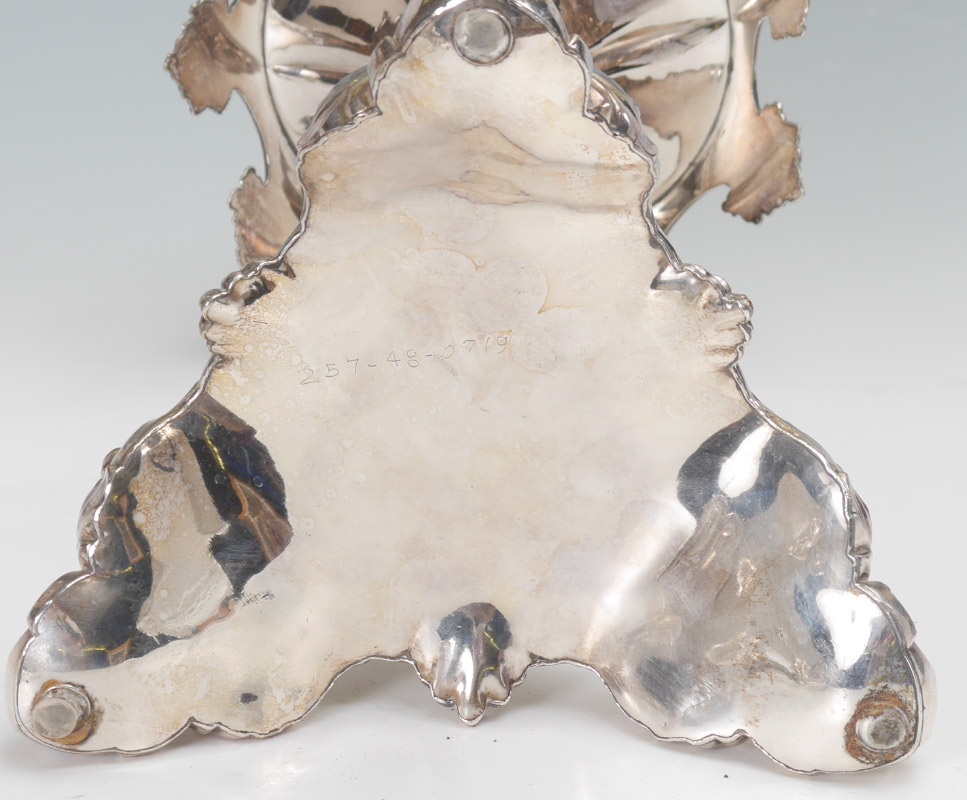 CONDITION: Center mount with ding to side, fleabites to bowls to be expected, loss of silverplate.