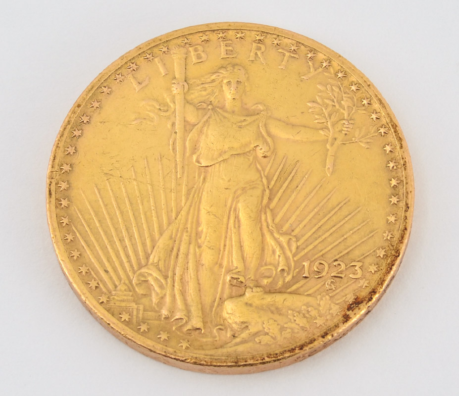 1923 ST. GAUDEN DOUBLE EAGLE $20 GOLD COIN: Ungraded, approx. 33.4 grams.