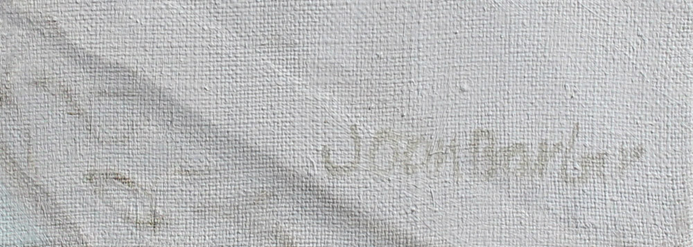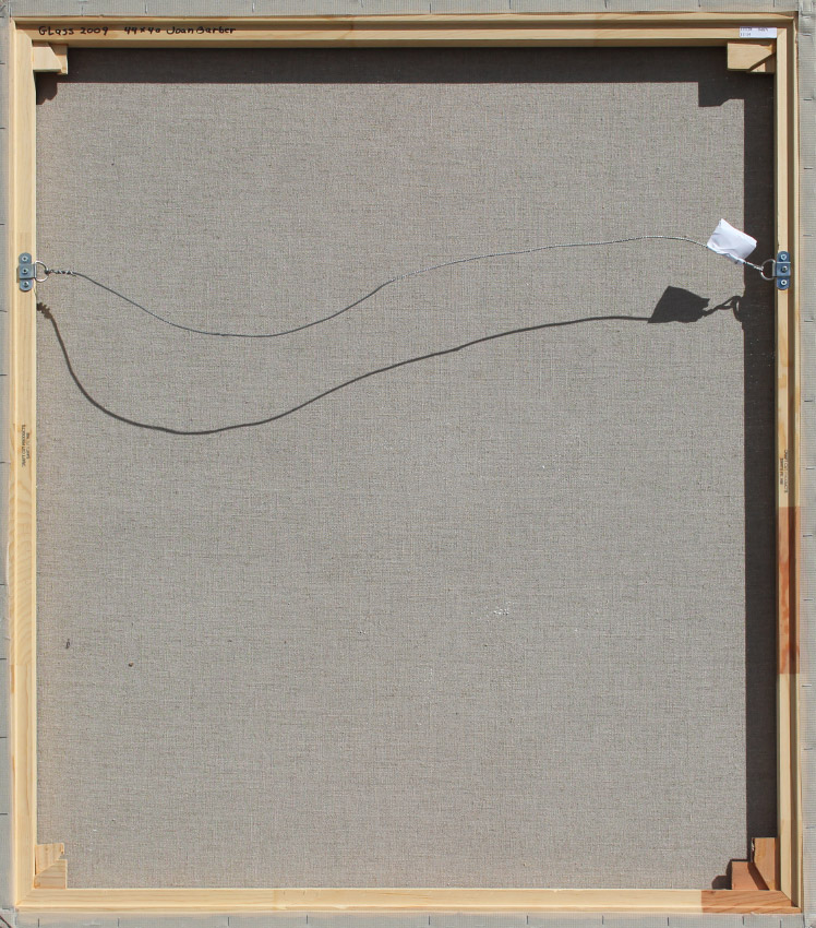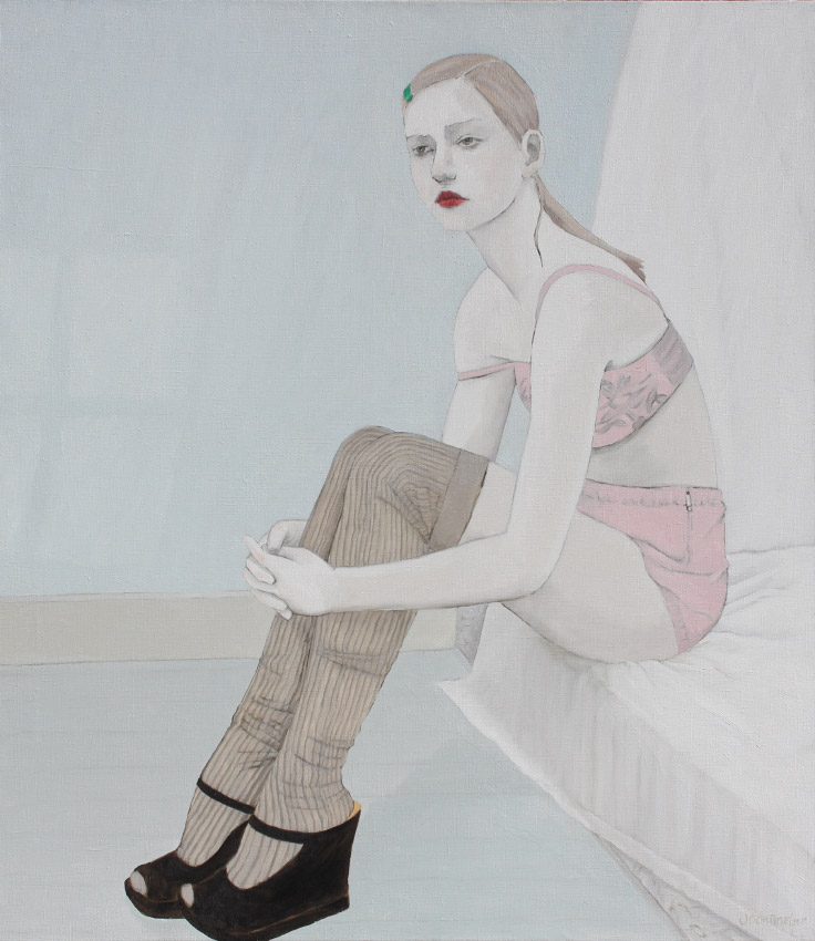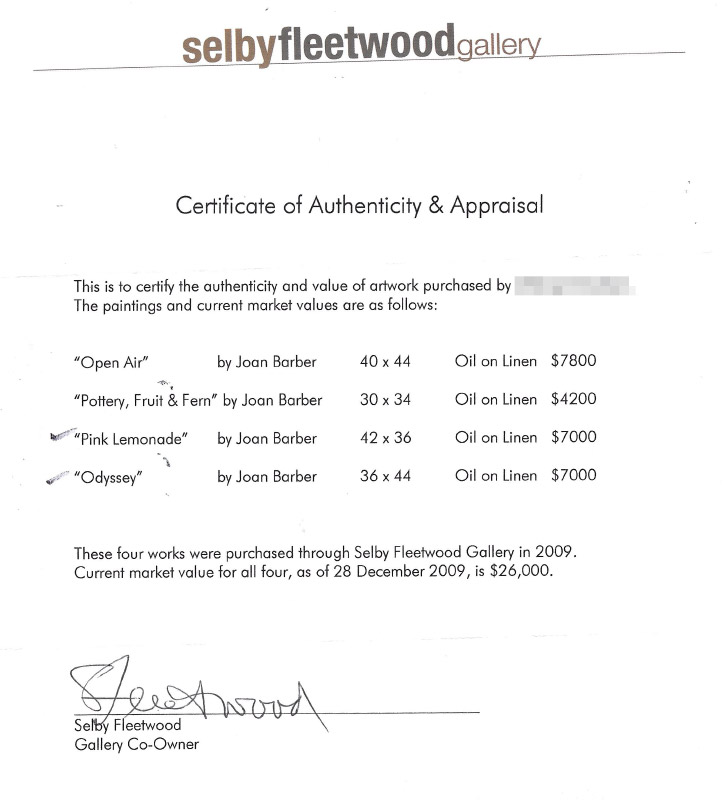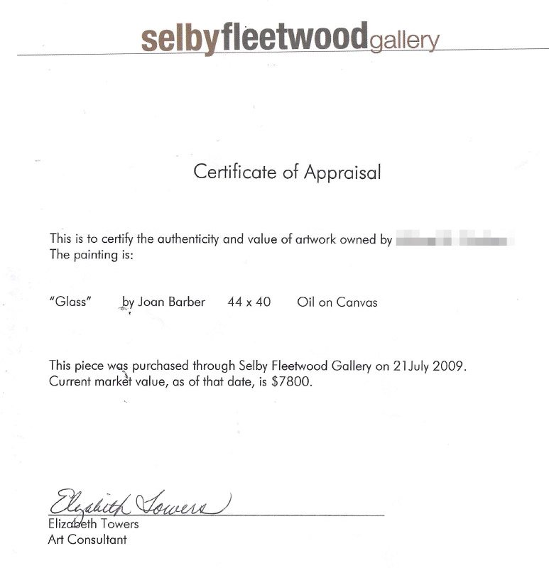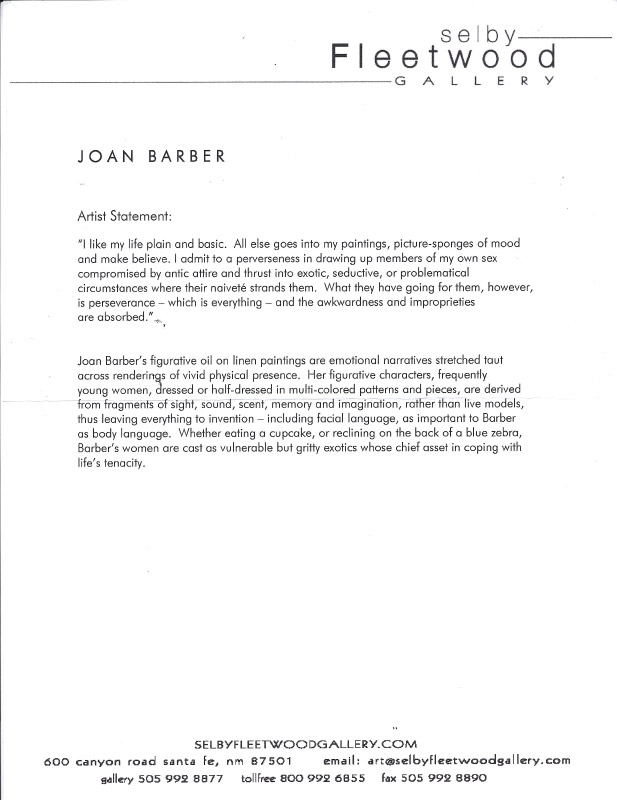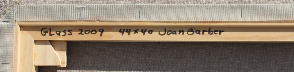 BARBER, Joan, (American, 1941- ): ''Glass'', Oil/Linen, Depicts a young seated female in pink lingerie with hands crossed, 44'' x 40'', signed lower right, signed, titled and dated verso, as well as original receipt for $7,000.00, and COA.