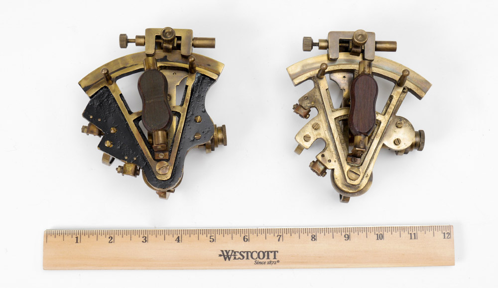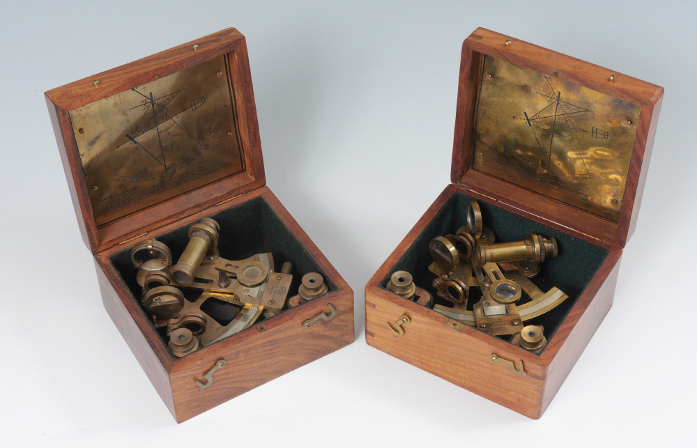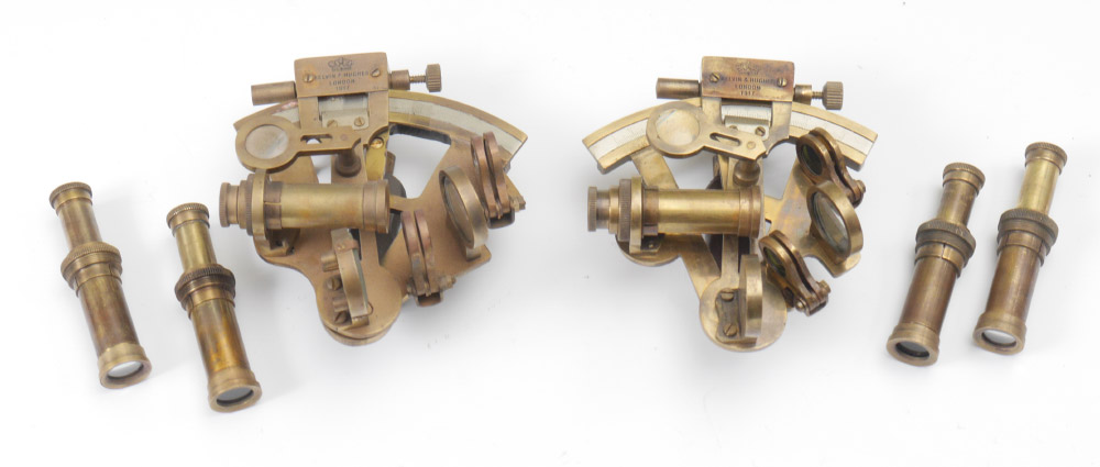 2 KELVIN & HUGHES NAUTICAL SEXTANT: 2nd half of the 20th century, each in a presentation box. Marked Kelvin & Hughes London, 1917. Boxes measures 3 1/2'' h. x 6'' x 5 1/2''.