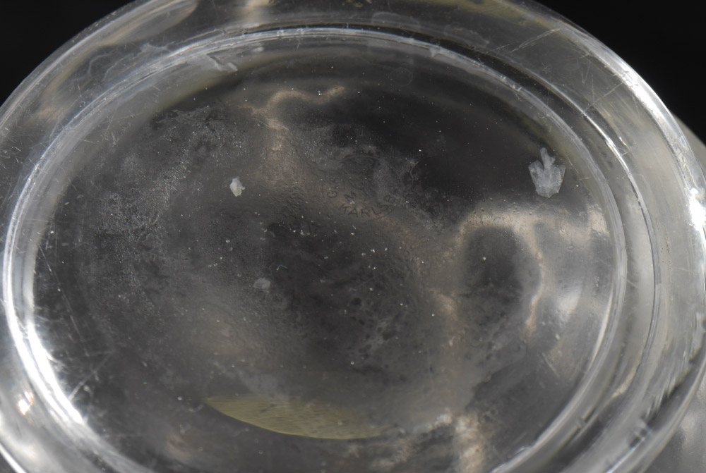 CONDITION: Tray with several bubble bursts, minor sickness to decanters.