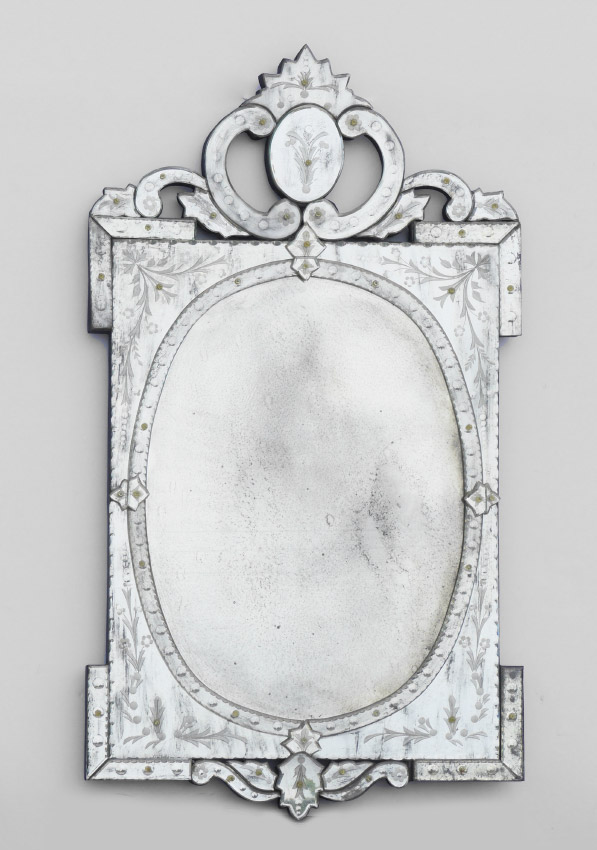 VENETIAN STYLE MIRROR: Contemporary mirror in the Venetian style, 43 1/4'' x 24'' x 1 1/4''.