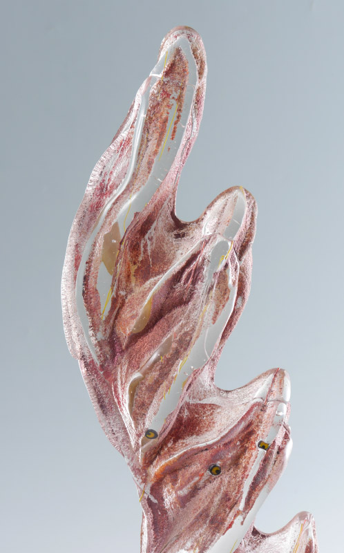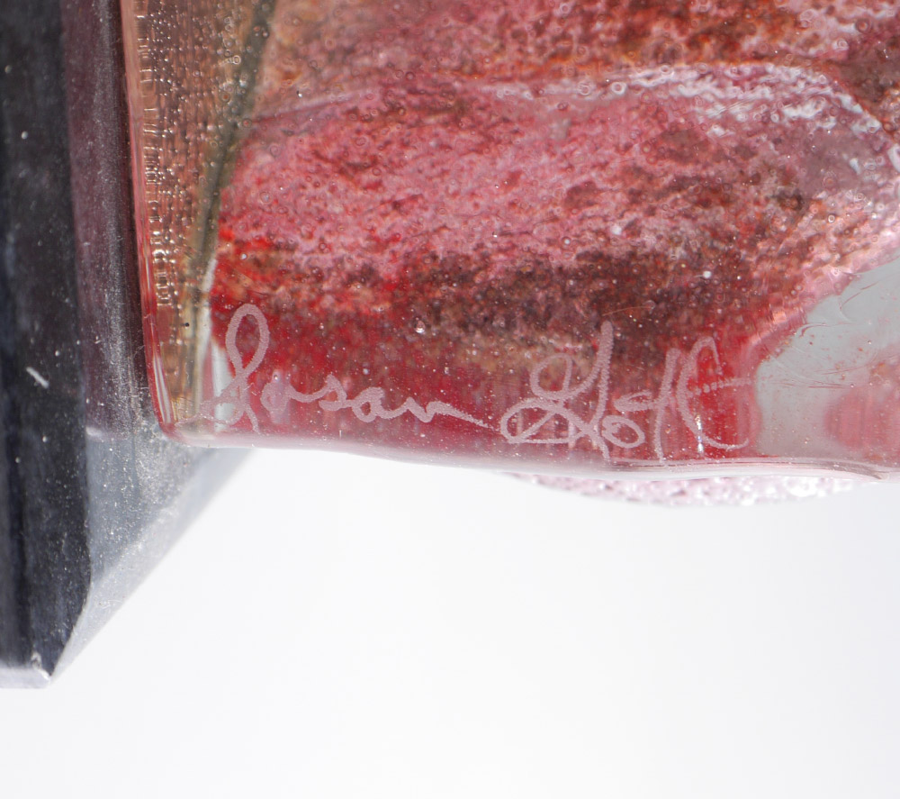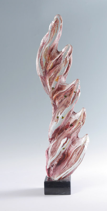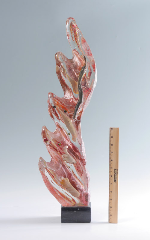 SUSAN GOTT GLASS FLAME SCULPTURE: 24'' h., affixed to a marble plinth which adds another 2'', signed verso.
