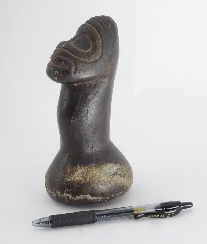 TAINO FIGURAL EFFIGY PESTLE: 6 1/2'' h. x 2 3/4'' x 3 1/4''.