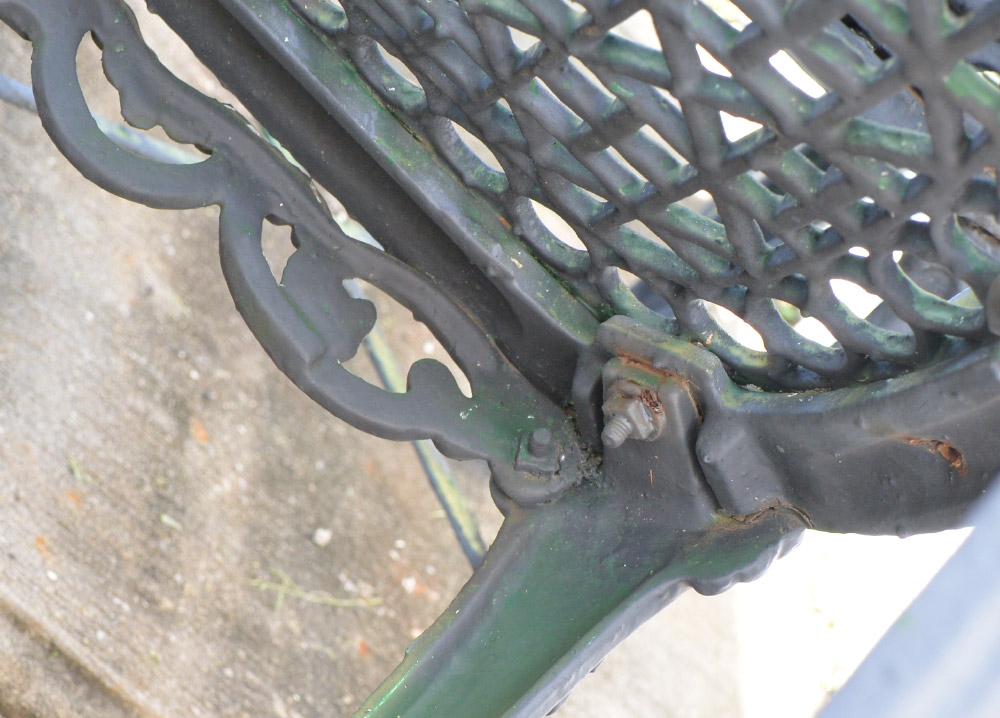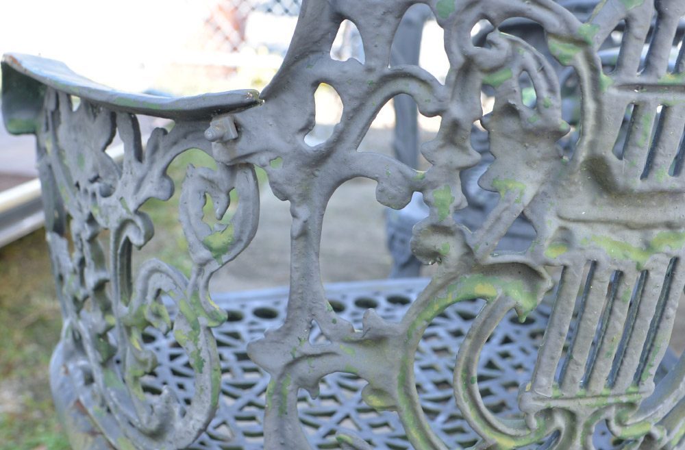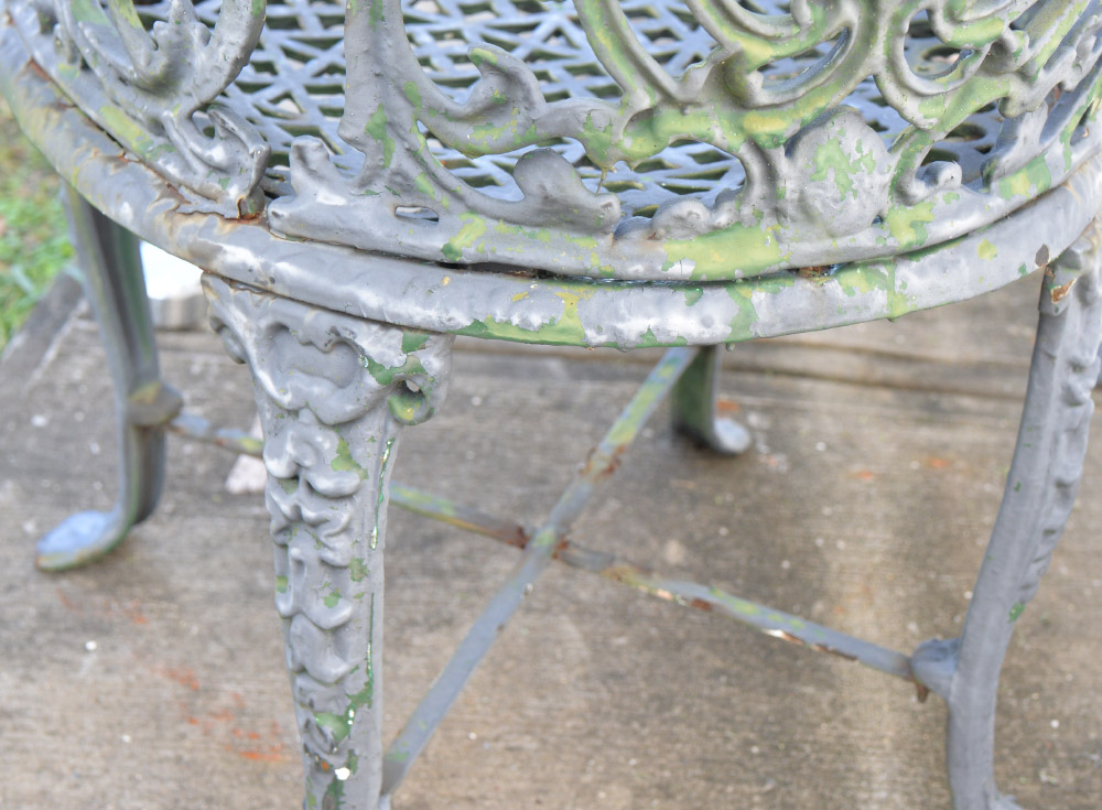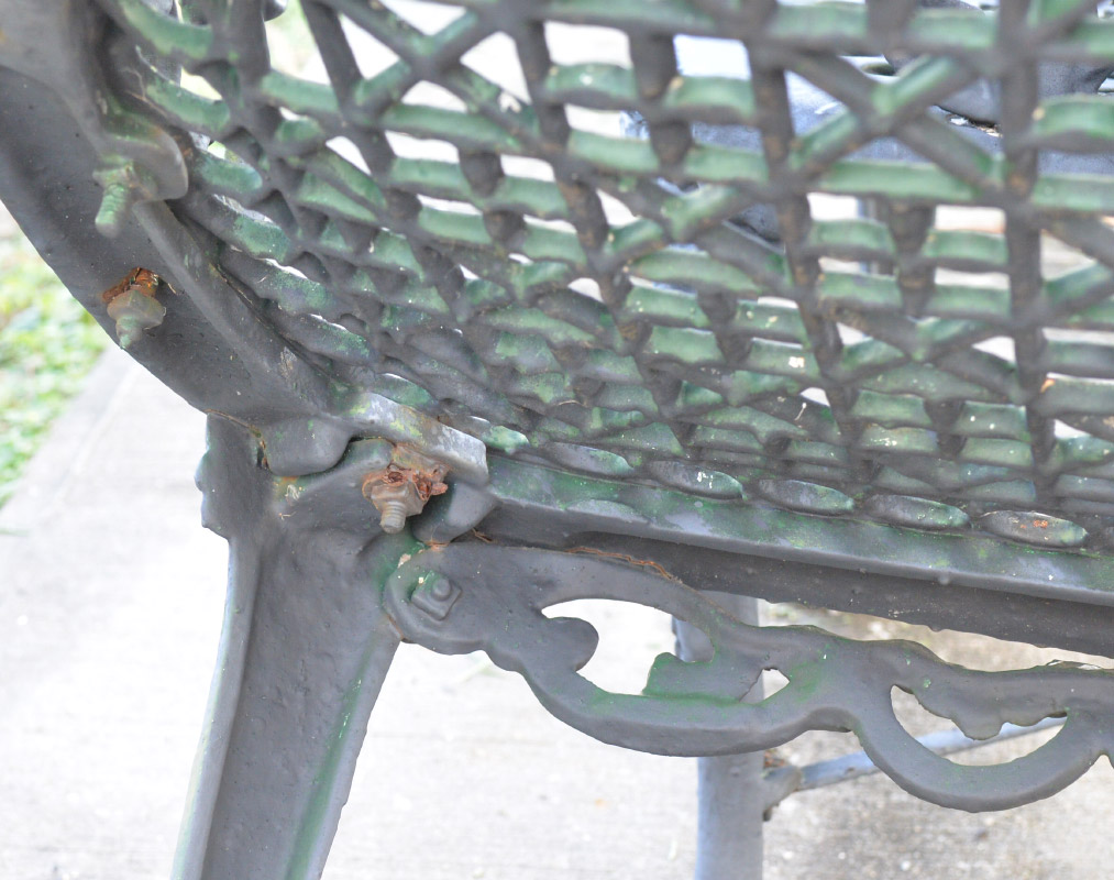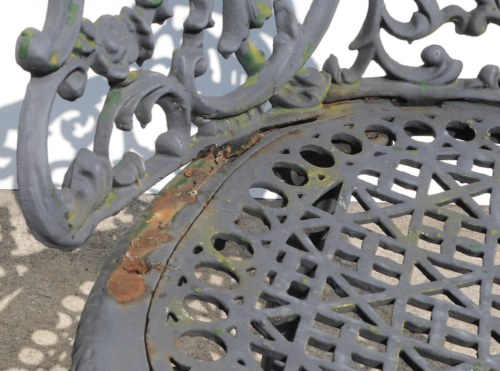 CONDITION: Several layers of repaint, obvious weathering, one arm in need of repair.