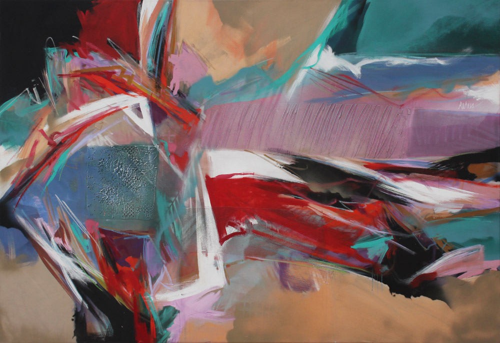 REHEIS, Craig (American, 1941-1991): Large Abstract Composition, Mixed Media/Canvas, 47 1/2'' x 71'', signed upper right, unframed.