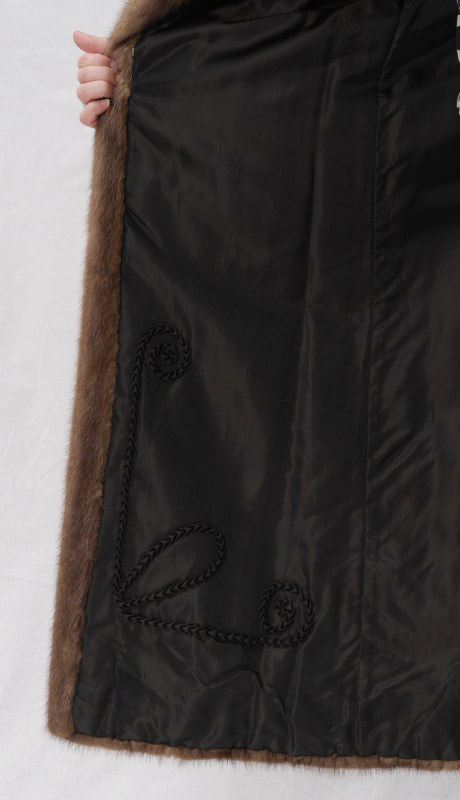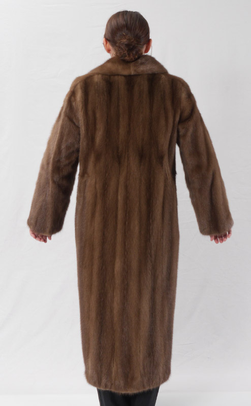 FULL LENGTH MINK FUR COAT: Warm light brown color. Collar and lapel, slight bell sleeves. Size 8 measures approx. 46'' collar to hem, 17 shoulder to shoulder and 22'' shoulder to cuff.
