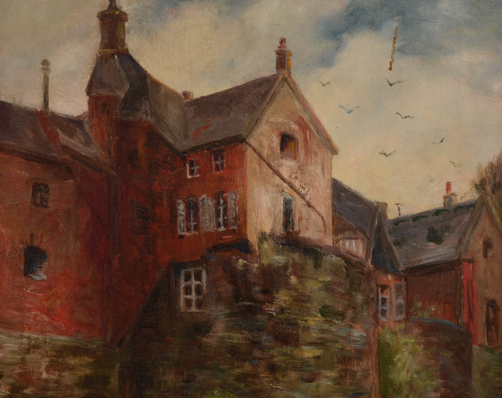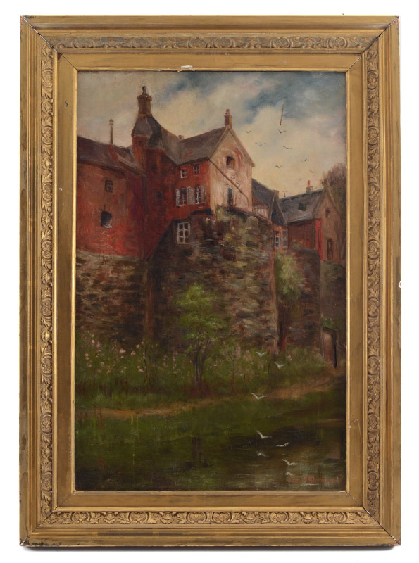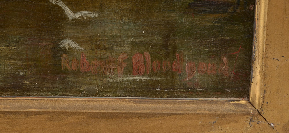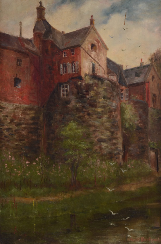 BLOODGOOD, Robert (American, 20th Century): ''House on the Wall'', Oil/Canvas, 21 1/4'' x 14'', signed lower right, old label affixed verso, gilded wooden liner, 26'' x 18 3/4''.
