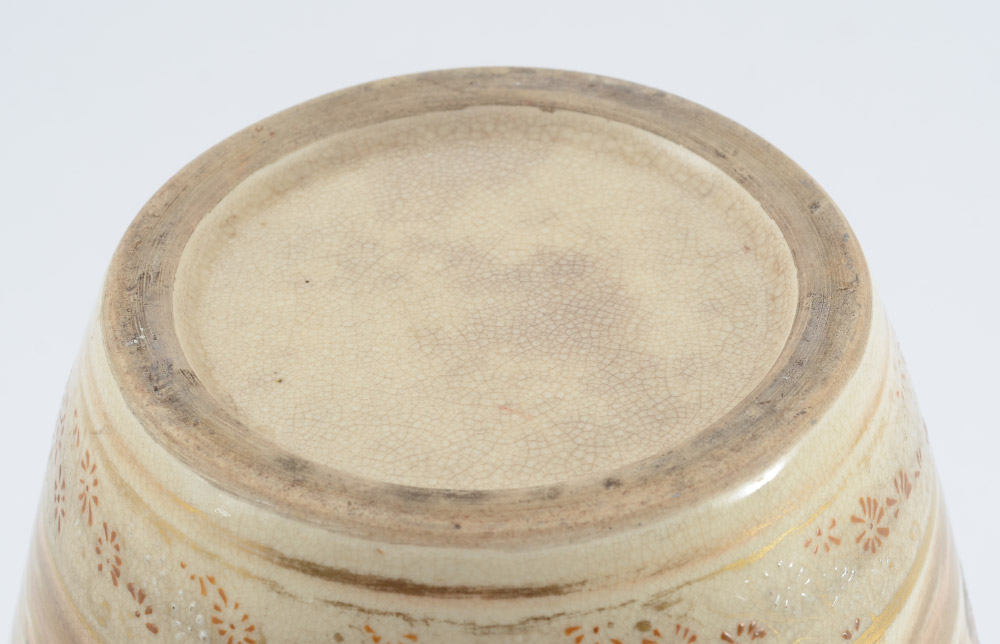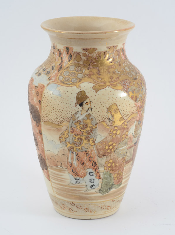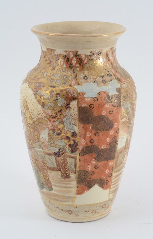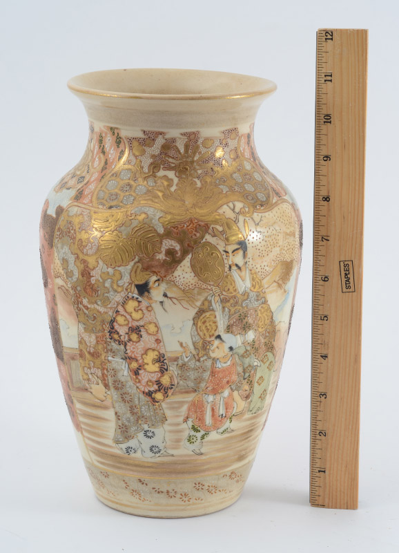 JAPANESE SATSUMA VASE: Floral decorated with outdoor genre scenes, unmarked. 10 3/4'' h. 6 1/4''.