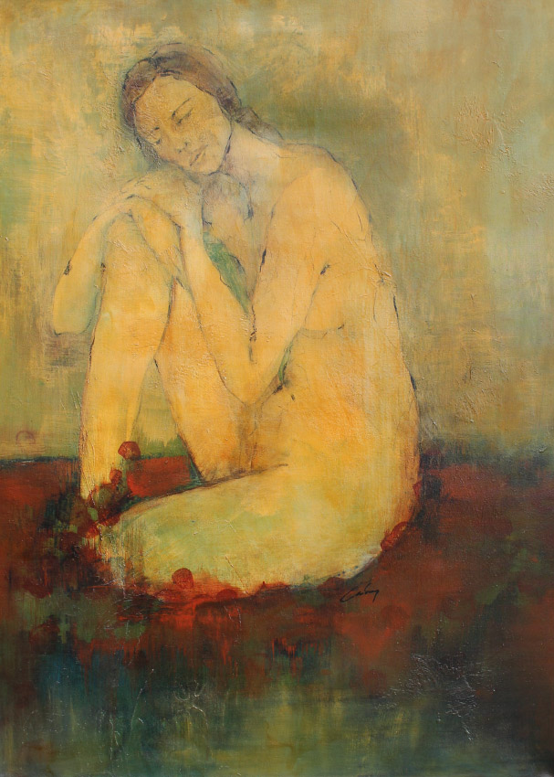 NIBERT, Aubrey (American, 1986- ): Seated Nude, Oil/Canvas, 43 1/2'' x 31 1/2'', signed lower right, unframed, price written verso of $2300.