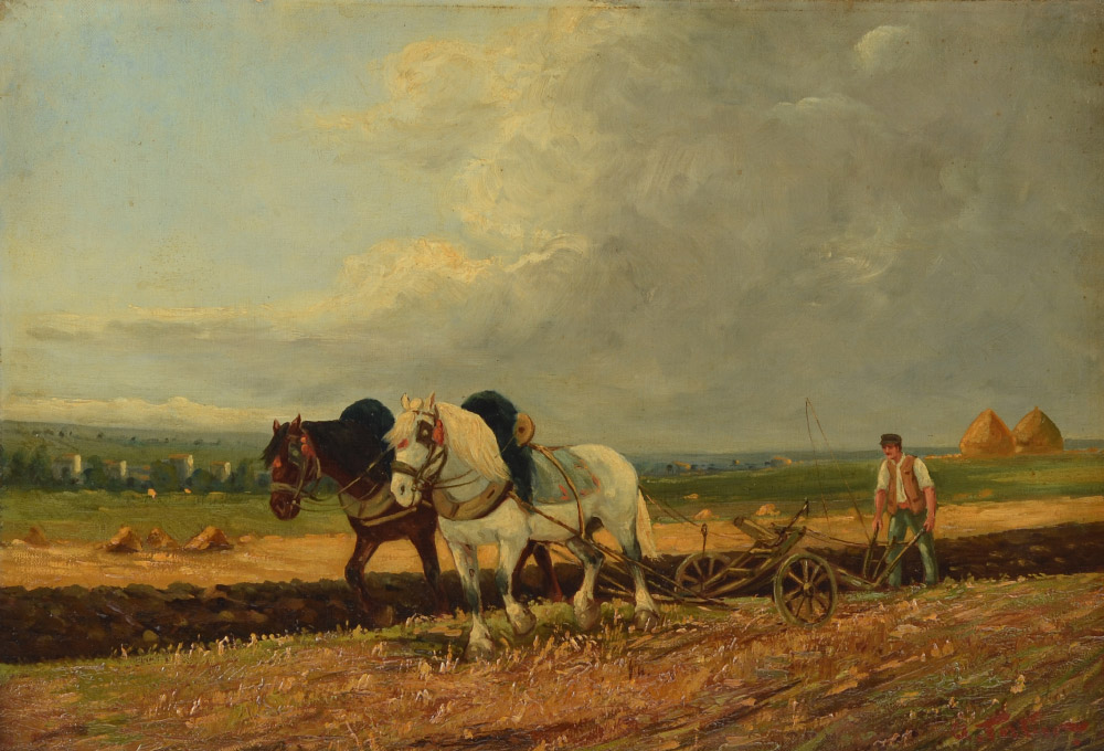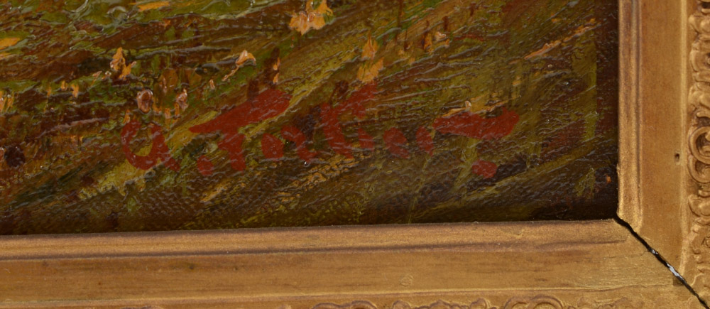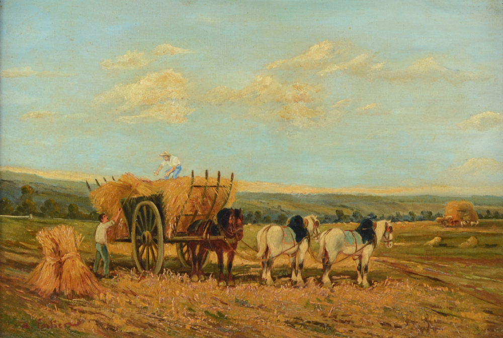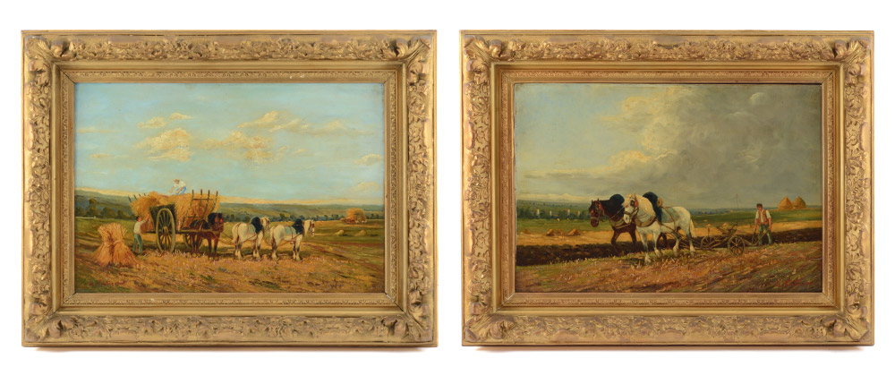 2 PAINTINGS DEPICTING RURAL LIFE SIGNED A. FORTIER: Oil/Canvas, 15'' x 21 3/4'', both signed, encased in heavy gilded and carved gesso frame, 21 3/4'' x 28 3/4''.