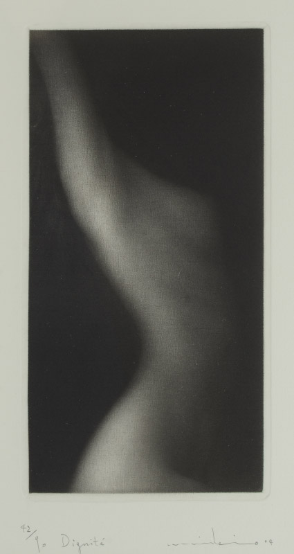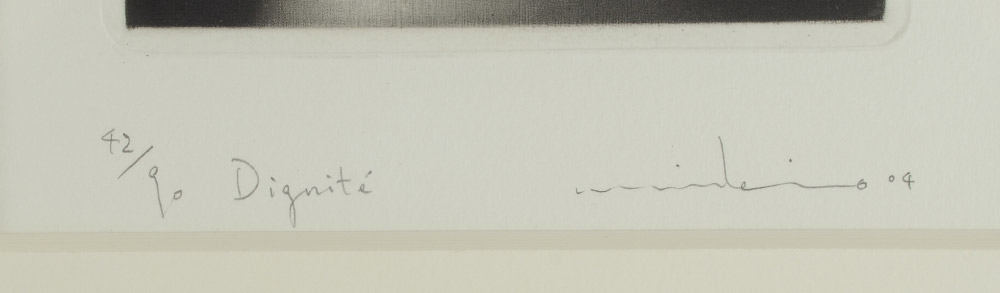 WATANABE, Mikio (Japanese, 1954- ): ''Dignite'', Mezzotint, sight size 10 1/4'' x 5 3/4'', signed lower right and dated '04, numbered 42/90 lower left, titled in the lower margin, framed, 20'' x 14 3/4''. Sold with Multiple Impressions COA.