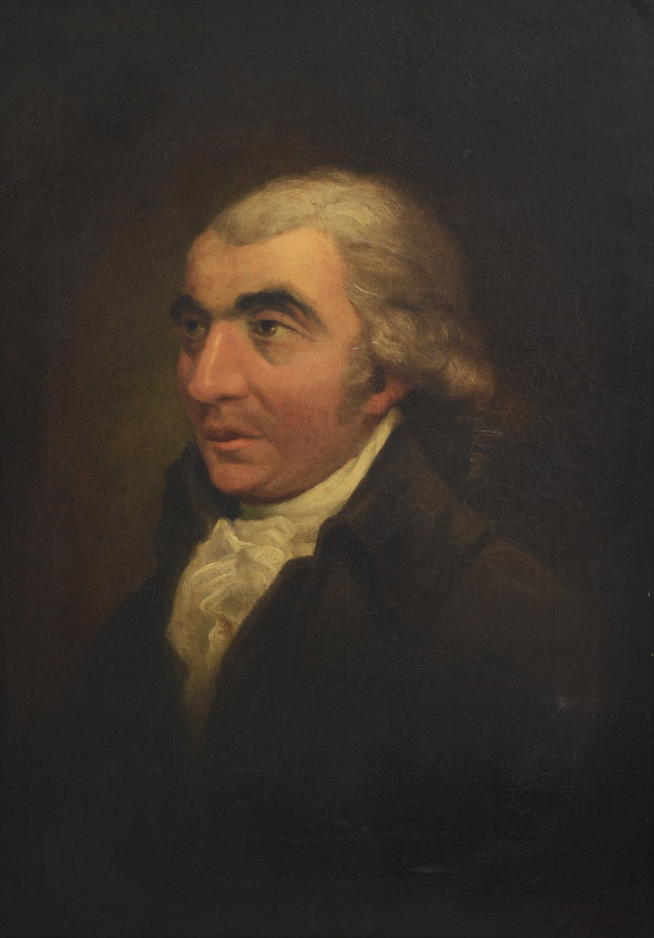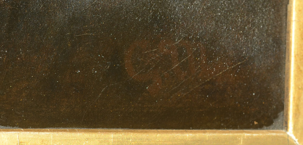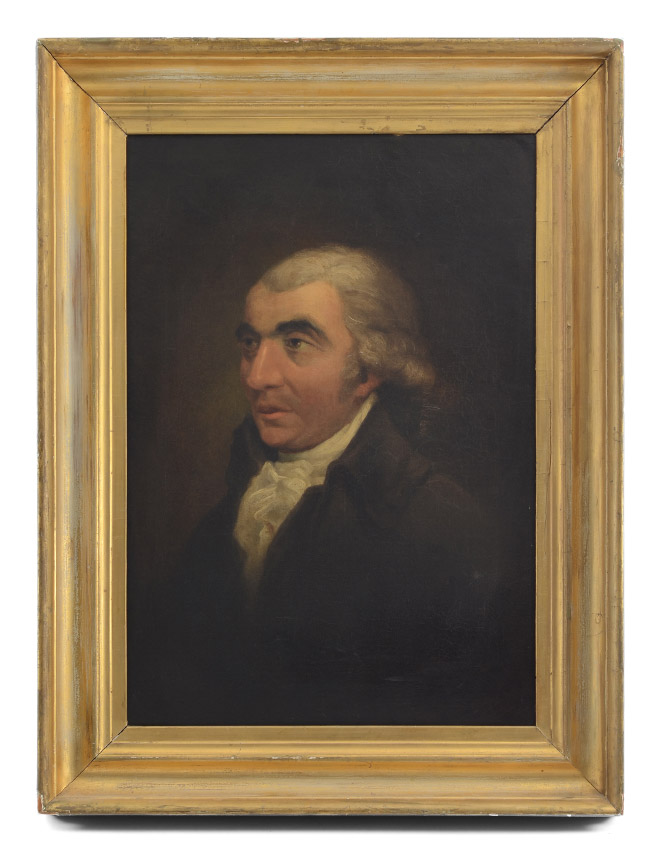GOOD PORTRAIT PAINTING OF A GENTLEMAN 18 C.: Oil/Canvas, sight size 21'' x 15'', signed lower right G.M., 19th Century gilded frame, 26 1/2'' X 20 1/4'', bears a partial Caelt Gallery label verso.