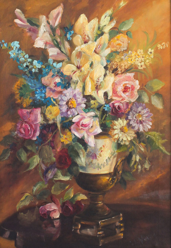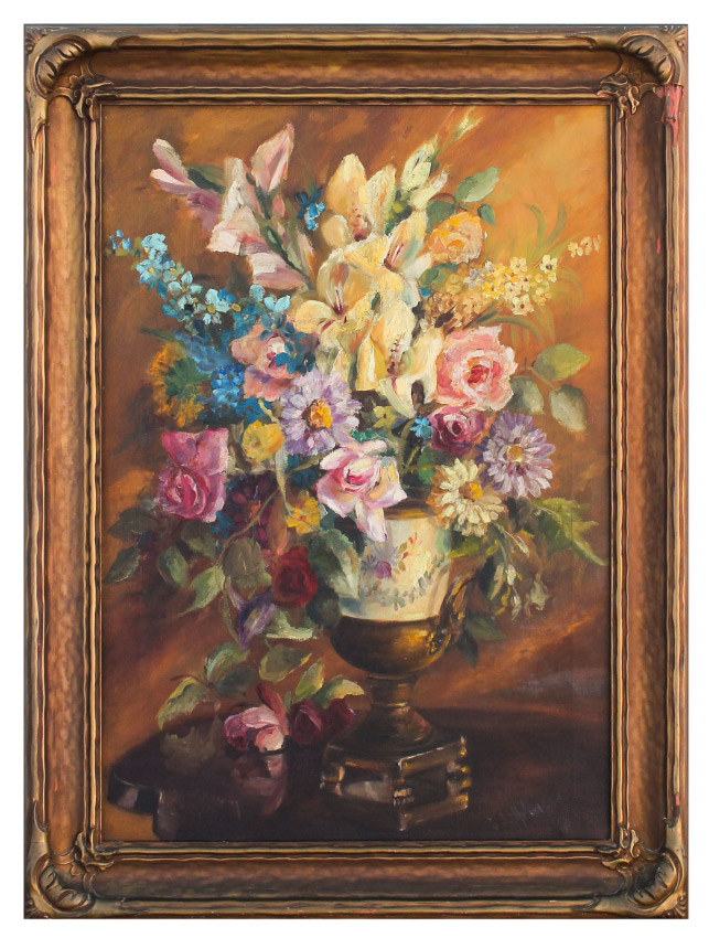 HUTCHISON STILL LIFE PAINTING OF FLOWERS IN A VASE: Oil/Canvas, 28'' x 20'', signed lower right, encased in period gilt carved gesso frame, 33 1/4'' x 25 1/2''.