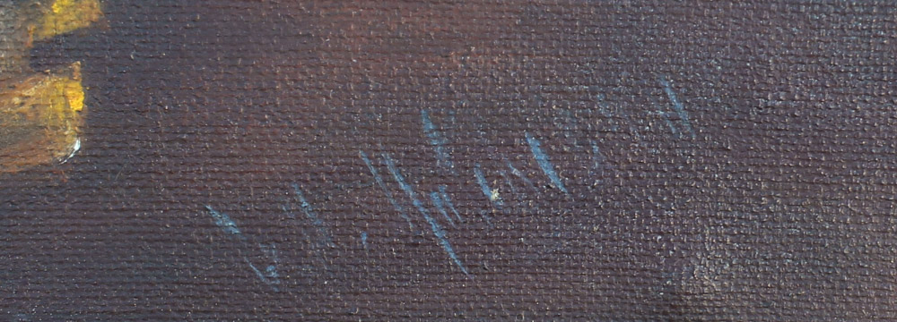 CONDITION: Frame has some loss of gilt, painting needs cleaning, mild crueler, several flecks, sold as is.