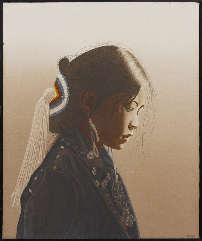 PACE, John (American, 1930-2003): Young Indian Beauty, Oil and Watercolor/Canvas, 24'' x 20'', signed lower right, thin edged wood frame, 24 1/2'' x 20 1/2''.
