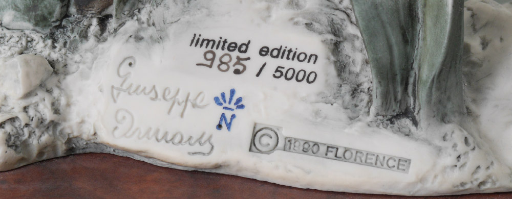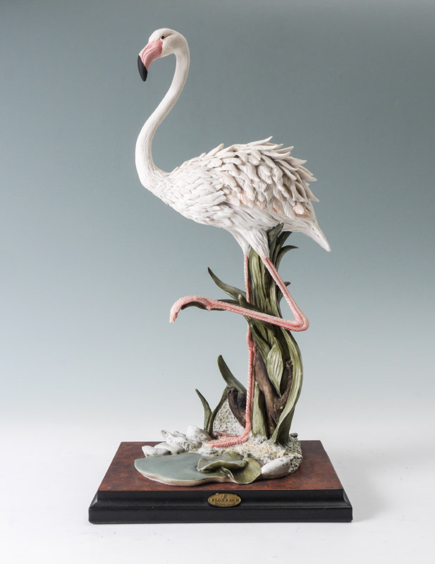 GIUSEPPE ARMANI FIGURINE, FLAMINGO #713S: Limited Edition 985/5000, 20''h. x 7.25'' x 10'' including attached base. No box or certificate.