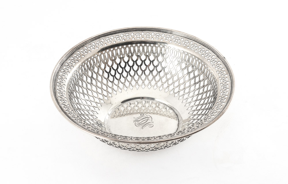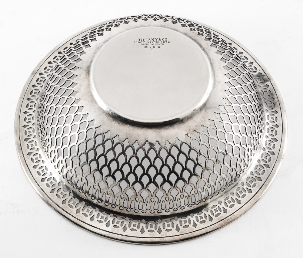 TIFFANY & CO. STERLING RETICULATED BOWL: Pierced rim, marked Tiffany & Co. 18147 D 9124, Sterling Silver. Measures 2 3/4'' x 8 1/2''. Approx 11.3 troy oz.