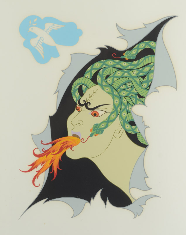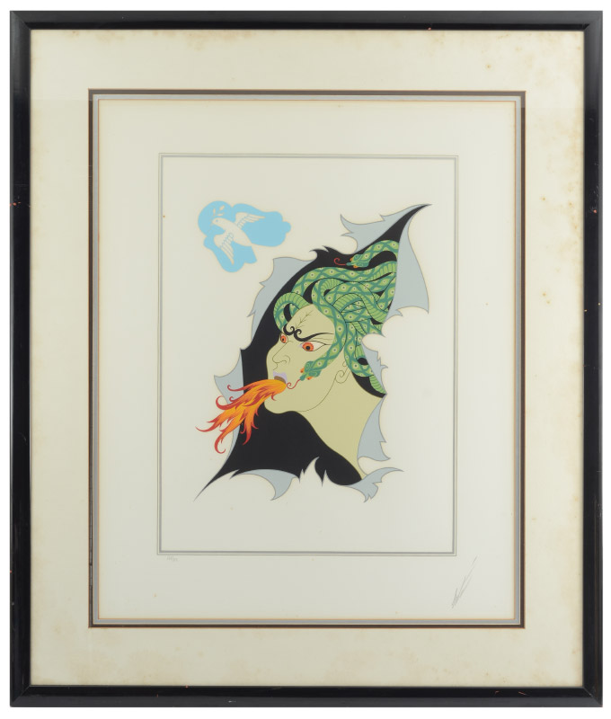 ERTE ''ANGER'' LITHOGRAPH FROM THE SEVEN DEADLY SINS SUITE: Sight size 25 1/2'' x 20 1/2'', pencil signed lower right, numbered 168/350 lower left, black lacquer frame with custom matte, 34 1/2'' x 29 1/2''.