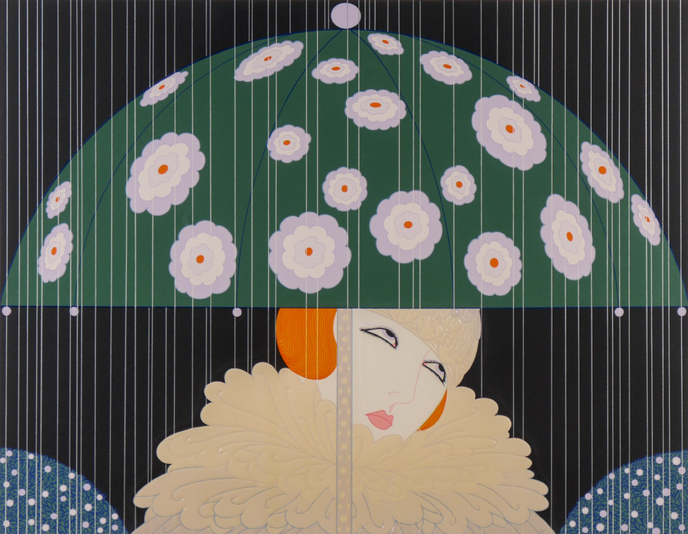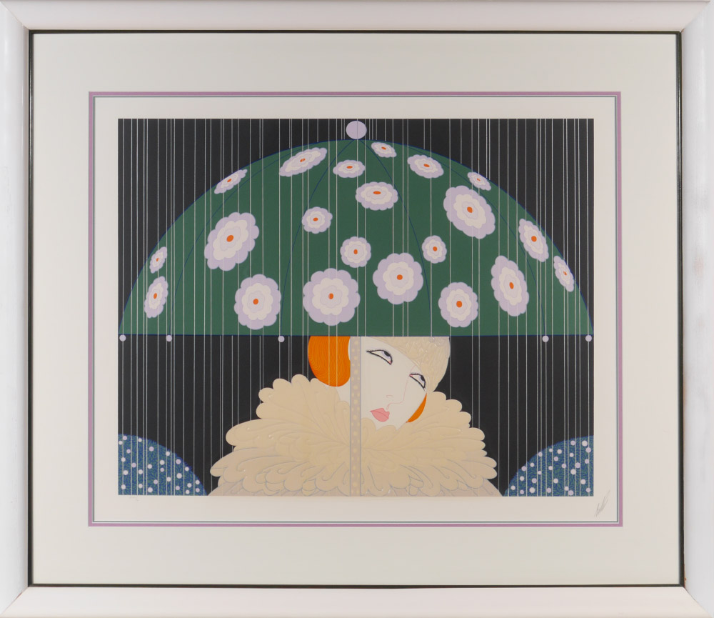 ERTE, (French, 1892-1990): ''Spring Rain'', Serigraph, sight size 27'' x 33 1/2'', pencil signed lower right, numbered 18/50 in Roman numerals on the bottom, custom acrylic frame, 39'' x 45 1/2''