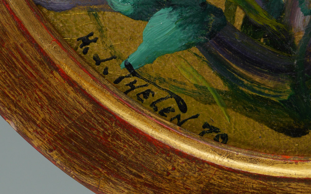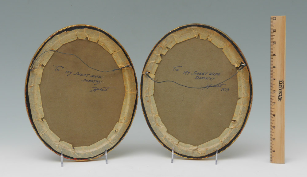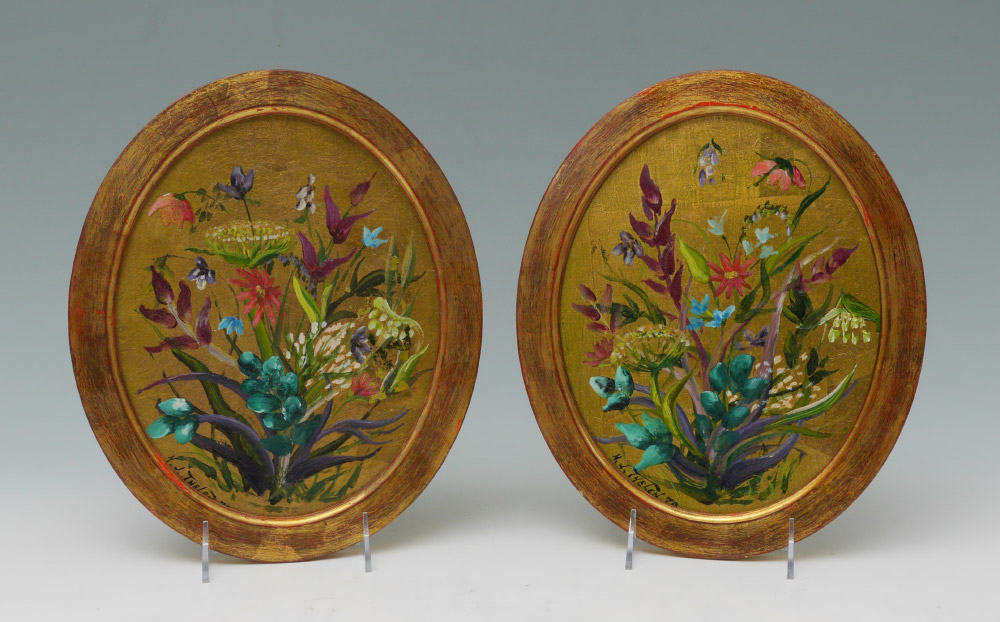THELEN, Hubert J., (American, 20th Century): Pair of oval still life floral scenes, painting and mixed media, framed, overall 11.5'' x 9.5''.