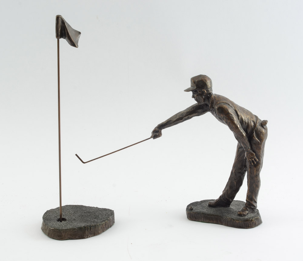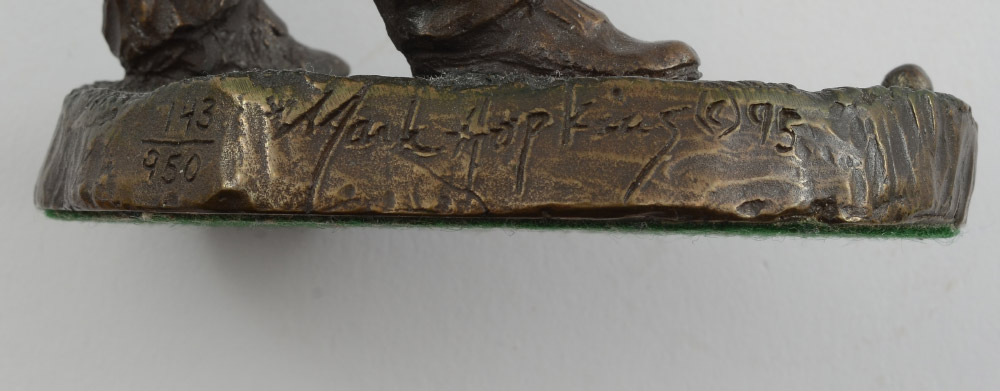 HOPKINS, Mark, (American 20th Century/Contemporary): ''Lining It Up'', 2 piece Bronze sculpture, flag measures 10 1/2'' h., golfer measures 8'' h. x 9'' w., this is an edition of 950, numbered 143, signed, numbered, and dated '95, COA included from Mark Hopkins.