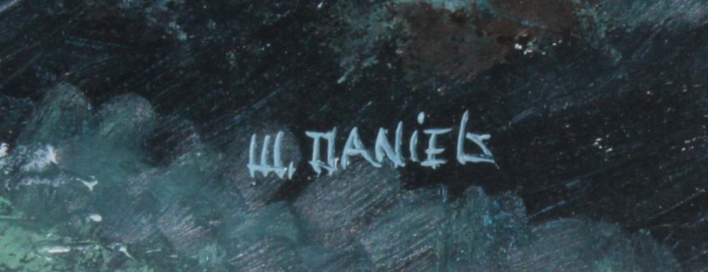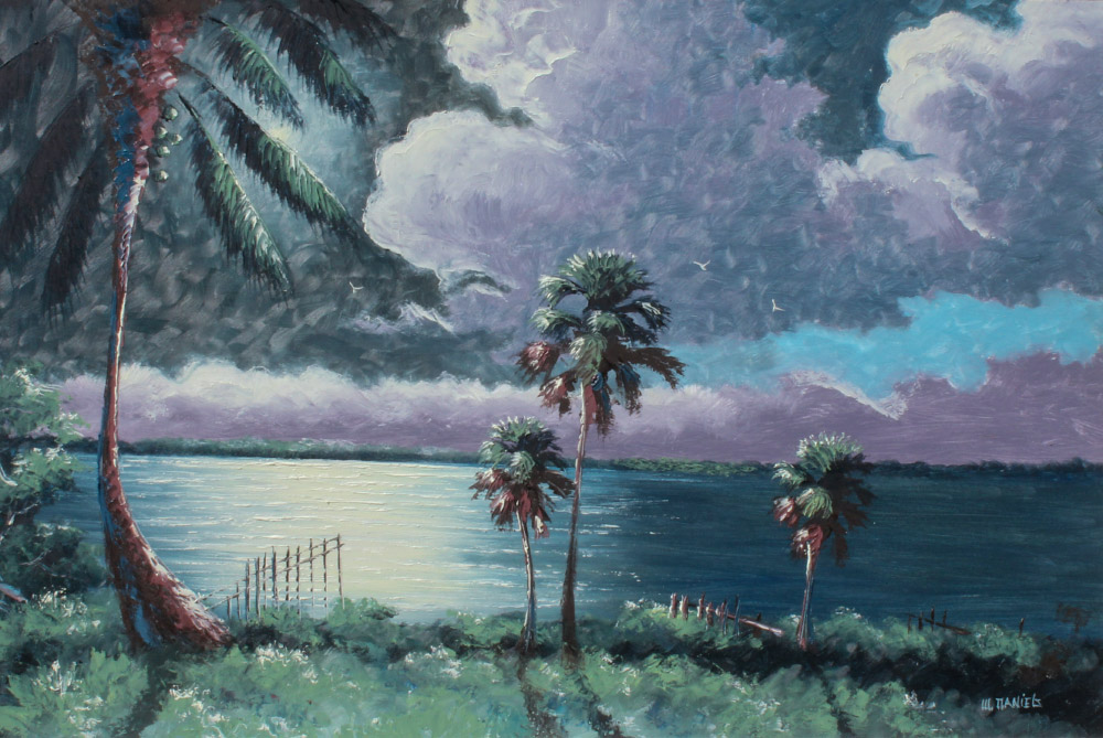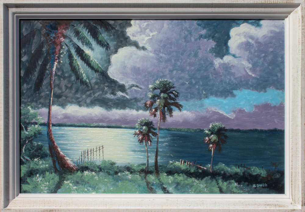 DANIELS, Willie, (American, 20th Century): Florida Highwaymen vibrant nocturnal Indian River scene, Oil/Masonite, signed lower right, 24'' x 36'', framed 27 3/4'' x 39 3/4''.