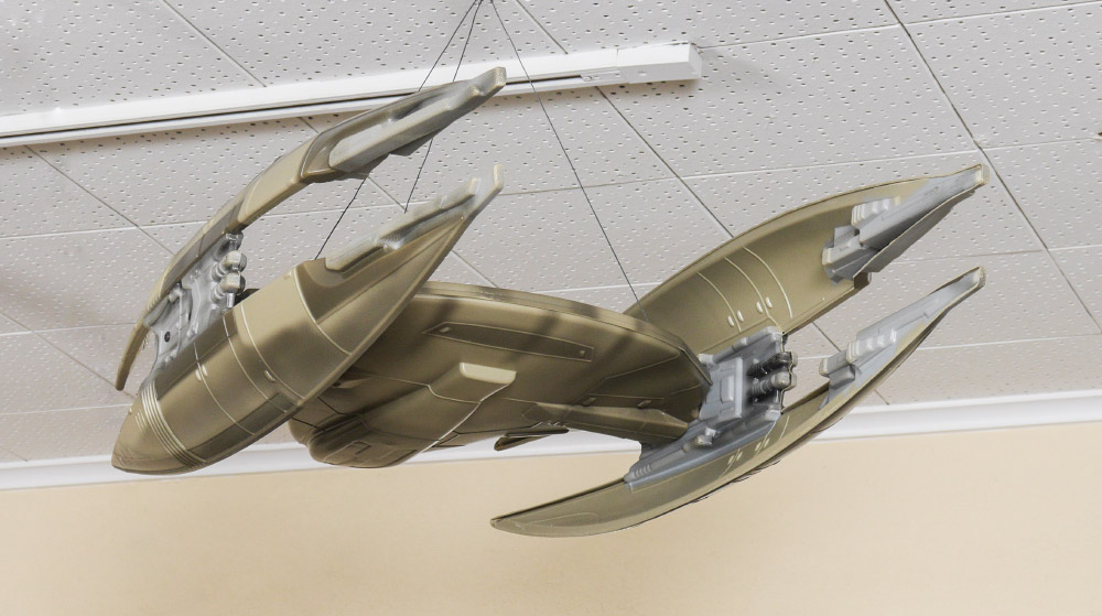 STAR WARS VULTURE DROID STARFIGHTER MODEL: Plastic construction, measures approx. 31'' x 18 1/2'' x 8''.