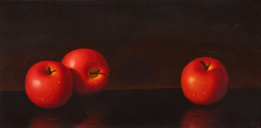 JACKSON, Alfred, (American 1940-2001): ''Still Life of Apples'', Oil/Canvas, 12'' x 24'', signed lower right, framed, 20 1/2'' x 32''.