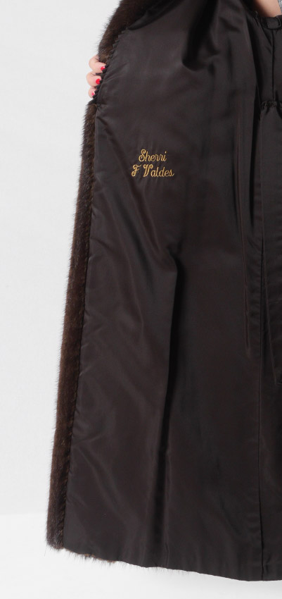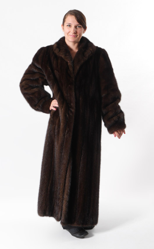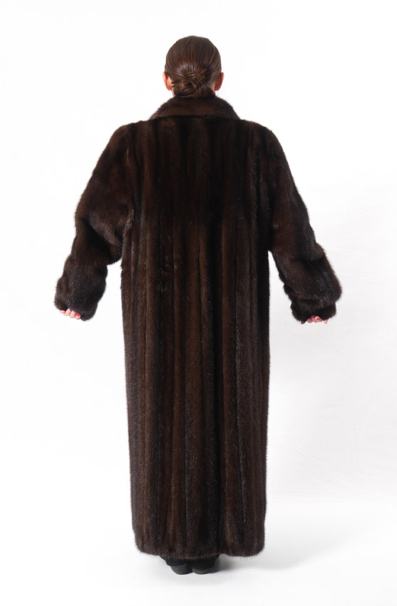 FULL LENGTH MINK COAT: Dion of Chicago label. To the shoe length coat with fitted cuffs, clasp front. Measures approx. 50'' collar to hem, 18 shoulder to shoulder and 21'' shoulder to cuff.