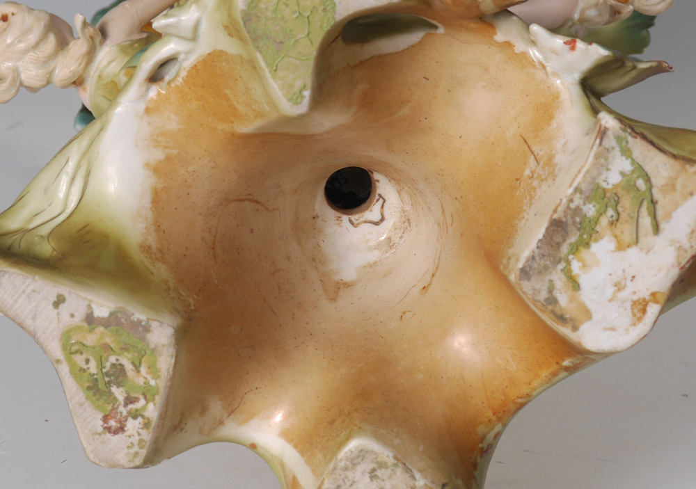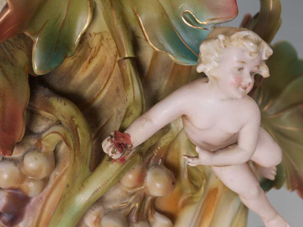 CONDITION: Several missing finger on both maidens, putti missing an object that was once in his hand, one maiden with repaired arm, other repairs may be noticed. Sold as-is.