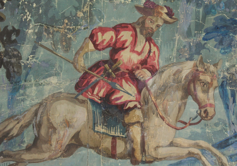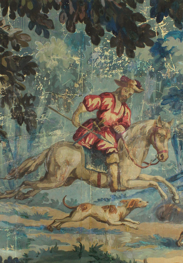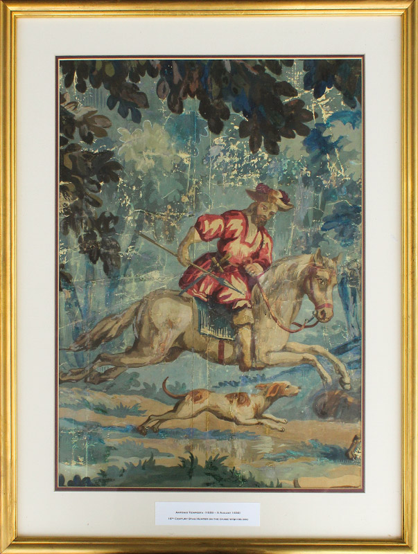 EARLY ITALIAN PAINTING DEPICTING A HUNT SCENE AFTER TEMPESTA: Watercolor and Gouache, sight size 23'' x 16 1/2'', framed 30'' x 23''.