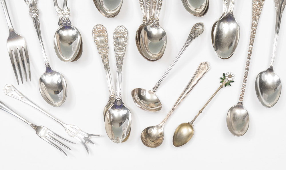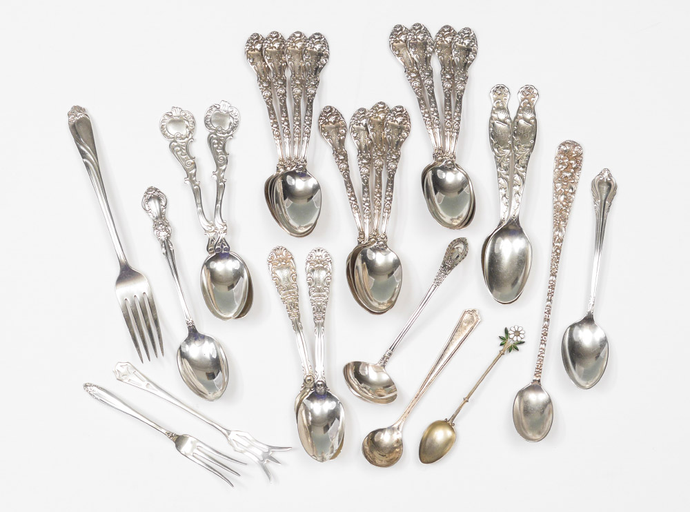 ESTATE COLLECTION OF STERLING FLATWARE: Approx. 27 piece assembled collection primarily teaspoons, makers to include Durgin, Dominick & Haff, Whiting, Shiebler, Century, Webster and more. Most monogrammed. Approx. 24.2 troy oz.