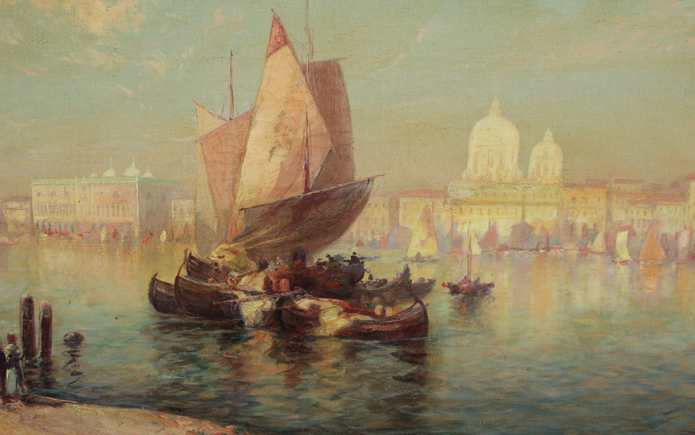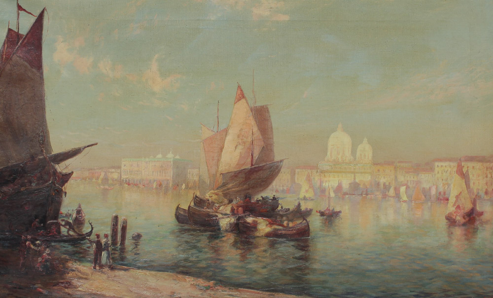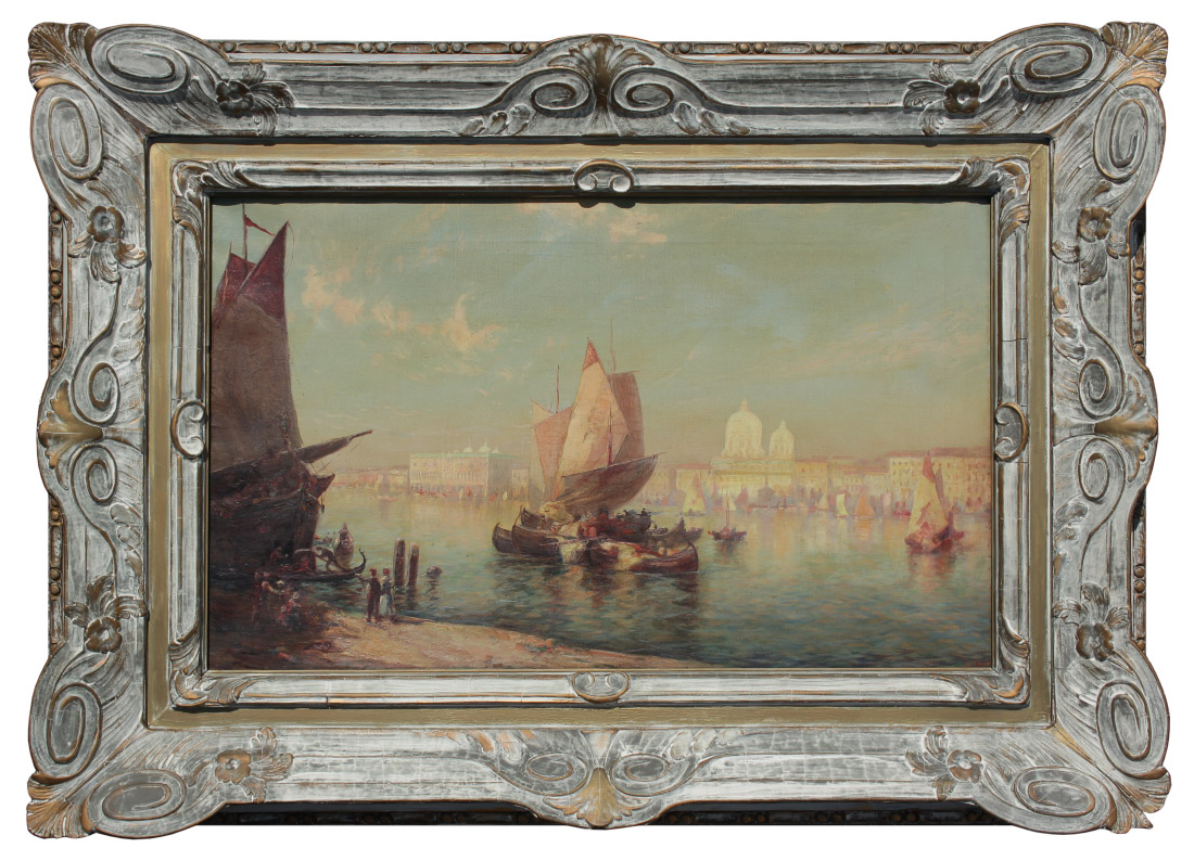 MULLER, Carl, (German, 1839-1904): Grand Canal, Venice, Oil/Canvas, sight size 16'' x 26'', signed lower right, encased in exquisite carved and painted period frame, 25 3/4'' x 36'' x 3''.