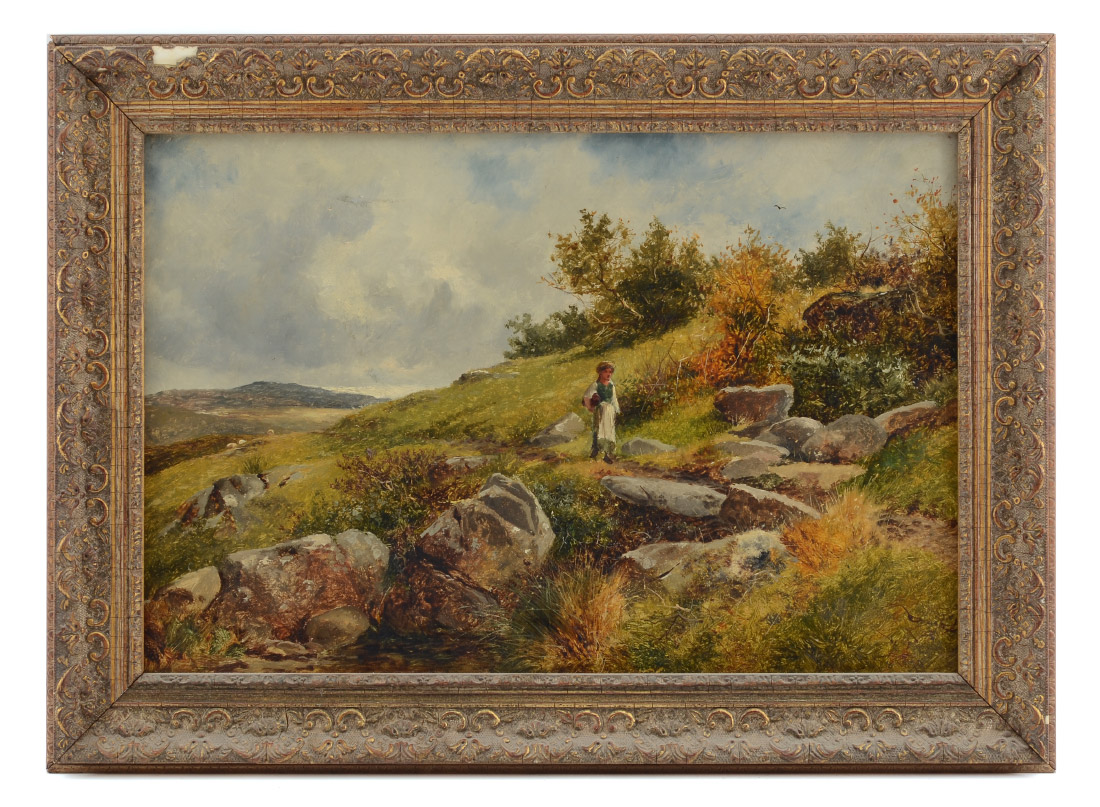 BATES, David, (British, 1840-1921): Hillside Pathway, North Wales, Oil/Canvas, sight size 12'' x 18'', signed lower right and dated 1879, newer frame, 16'' x 21 1/2''.