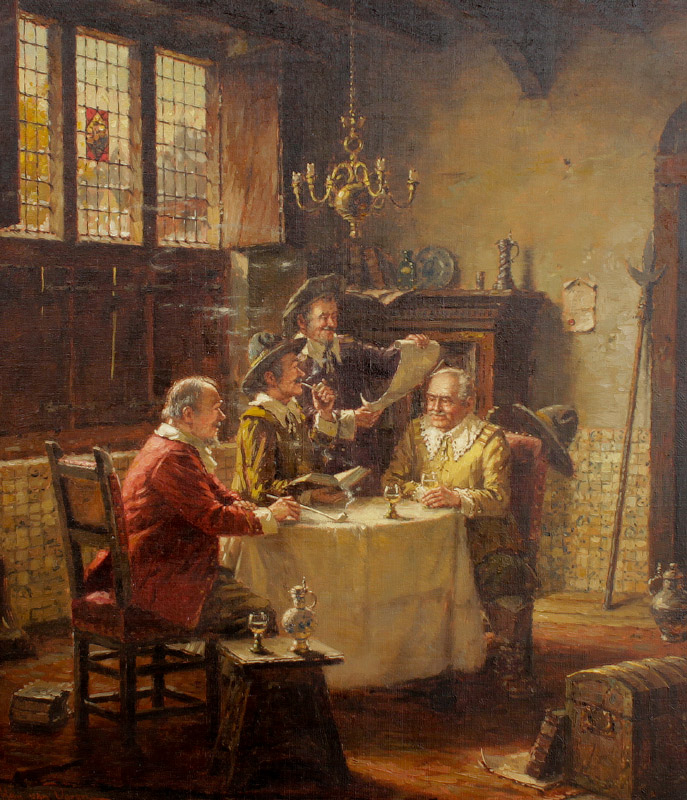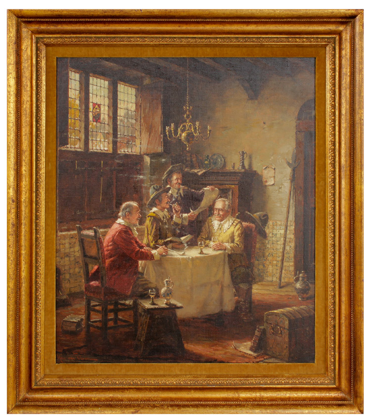 VAN DOREN, Hein, (Dutch, 1930- ): 17th Century Genre Interior Scene of Men in Conversation, Oil/Canvas, 27'' x 23 1/2'', signed lower left, contemporary frame, 35'' x 31 1/2''.