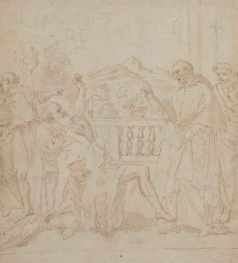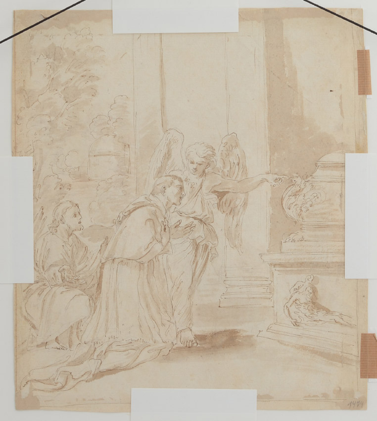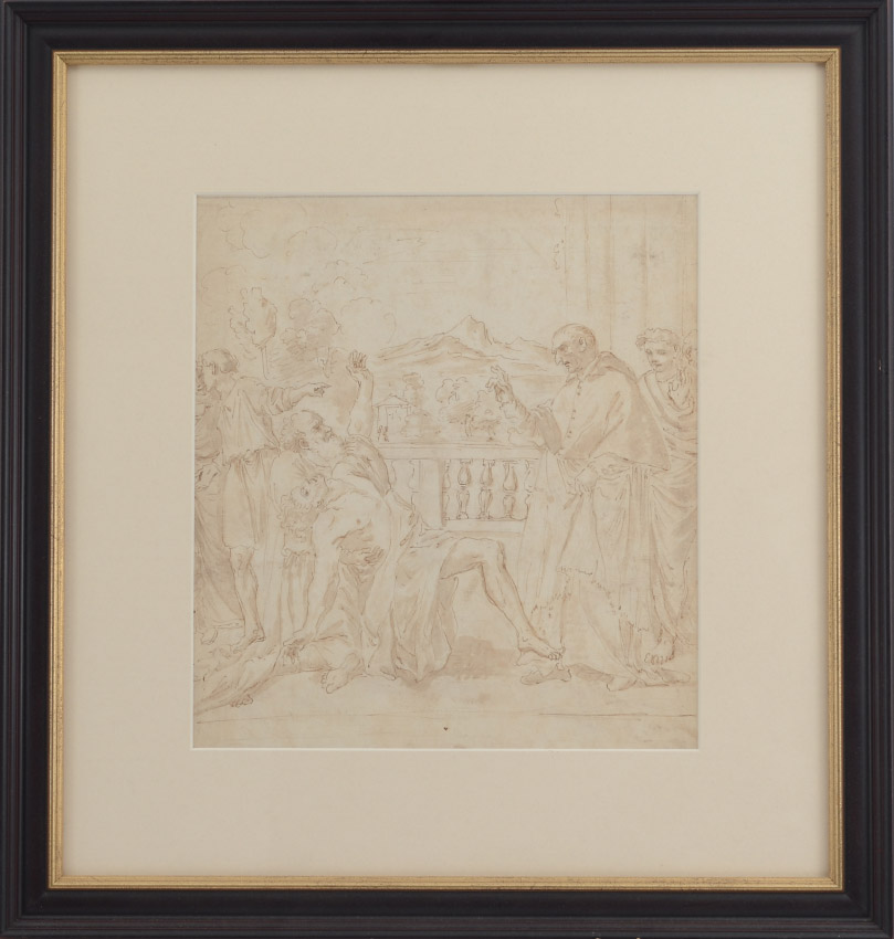 TWO SIDED OLD MASTER STYLE SEPIA PAINTING: Sight size 12 3/4'' x 11 1/8'', framed, 21'' x 19 1/2''.